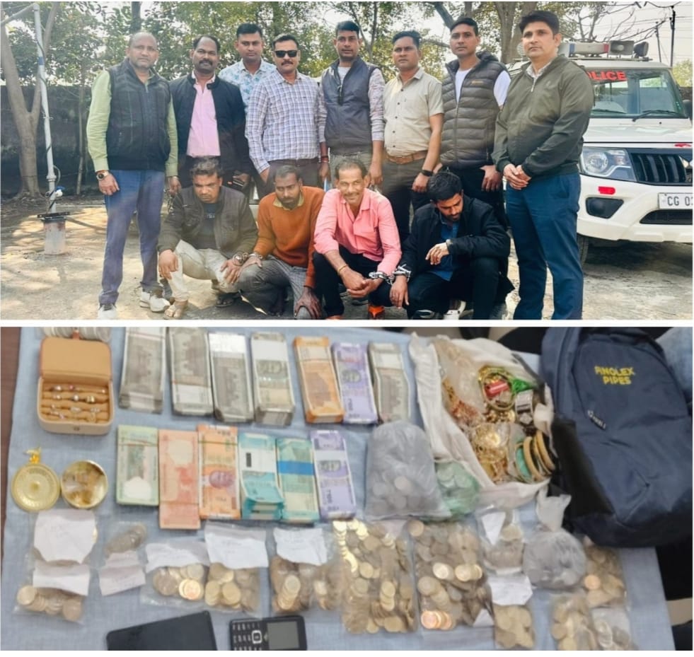 अकलतरा थाना क्षेत्र में हुई सिलसिलेवार चोरी का पुलिस ने पर्दाफाश कर दिया है। कस्तूरी ट्रेडर्स में हुई बड़ी चोरी के मामले में पुलिस एवं सायबर टीम की सक्रियता से 4 आरोपियों को गिरफ्तार किया गया है। आरोपियों के कब्जे से लगभग 3 लाख रुपये नगद, सोने-चांदी के जेवरात, 28 चांदी के सिक्के, घटना में प्रयुक्त दो मोटरसाइटि एक ऑटो बरामद किया गया है। चोरी के बाद फॉरेंसिक, फिंगरप्रिंट और डॉग स्क्वॉड की मदद से जांच आगे बढ़ाई गई तथा शहर के सीसीटीवी फुटेज खंगाले गए। चार दिन की लगातार जांच में संजय नगर निवासी अफरोज खान और किशन कश्यप पर संदेह गहरा हुआ। पूछताछ में अफरोज ने अपने साथियों अनिल साहू व किशन कश्यप के साथ मिलकर चोरी करना स्वीकार किया। किशन पूर्व में कस्तूरी ट्रेडर्स में कार्य कर चुका था और घर की जानकारी रखता था।सभी ने मिलकर ताला तोड़कर सोने-चांदी के जेवर, नगदी और अन्य सामान बैग में भरकर ले जाने की बात कबूल की।चोरी के बाद वायरल सीसीटीवी फुटेज देखकर राजेश रगड़े, राजेश सिदार और सुभाष रगड़े ने आरोपियों को ब्लैकमेल कर चोरी की रकम में हिस्सा मांगा। इसके बाद पुलिस में छापे मारकर सभी आरोपियों को पकड़ लिया।