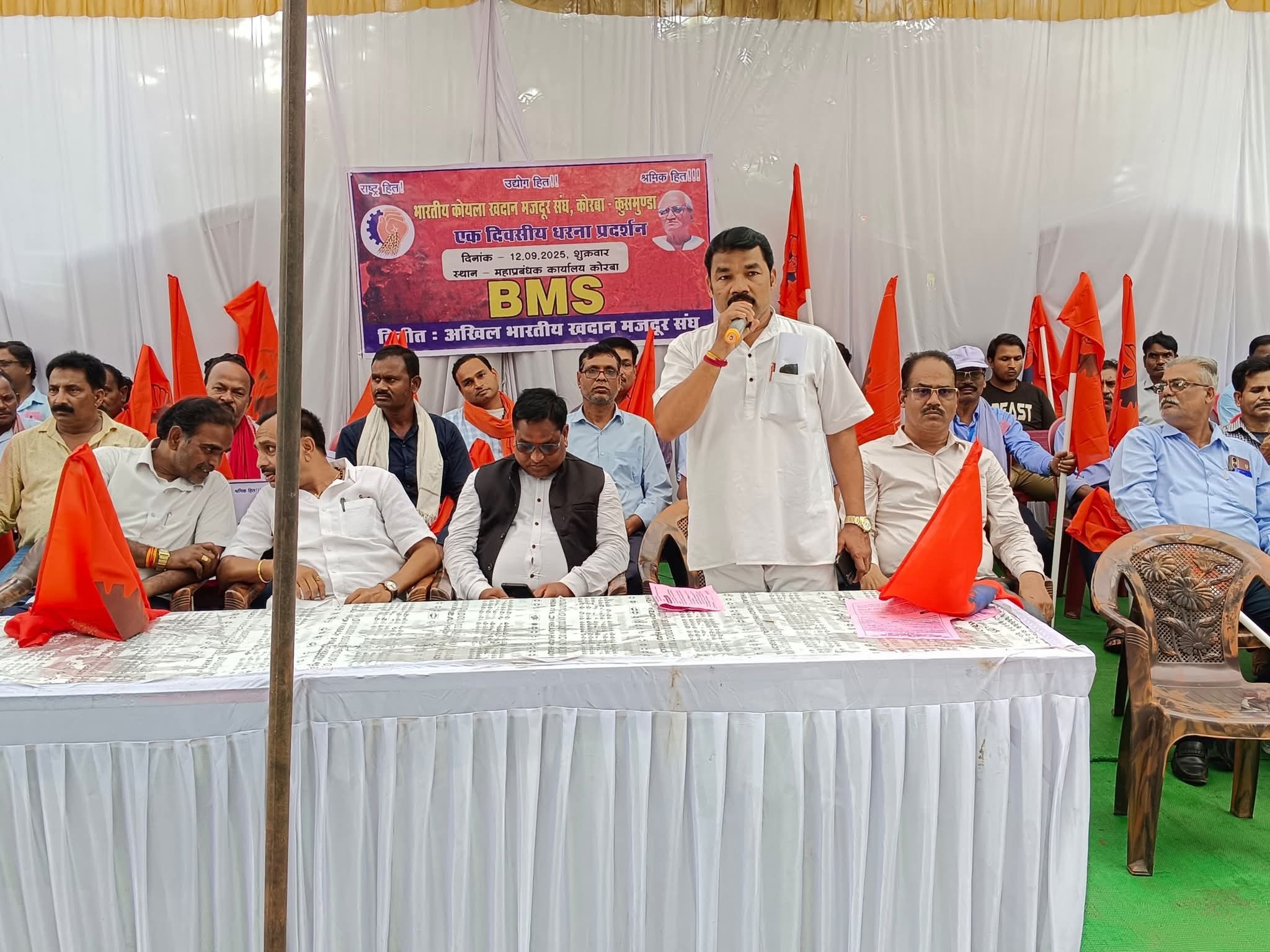 अखिल भारतीय खदान मजदूर संघ (BMS) के आह्वान पर कोरबा में धरना-प्रदर्शन
