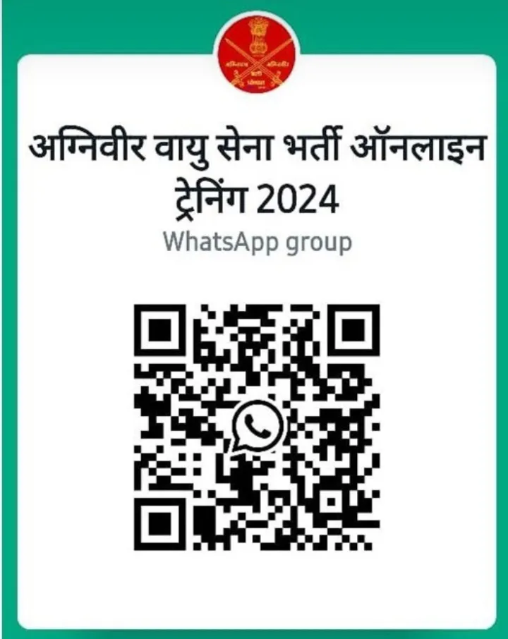 शासन के निर्देशानुसार भारतीय वायु सेना में परीक्षा की तैयारी में सम्मिलित होने हेतु व्हाट्सअप ग्रुप तैयार किया गया है। इच्छुक आवेदक व्हाट्सअप में क्यू.आर. कोड स्कैन कर व्हाट्सअप ग्रुप में सम्मिलित हो सकते हैं। वायु सेना भर्ती में इच्छुक पंजीकृत आवेदक 17 फरवरी से सवेरे 8 बजे स्थान स्वामी-आत्मानंद अंग्रेजी माध्यम उ.मा. विद्यालय, तिलक नगर, बिलासपुर में निःशुल्क परीक्षा की तैयारी हेतु उपस्थित हो सकते हैं।