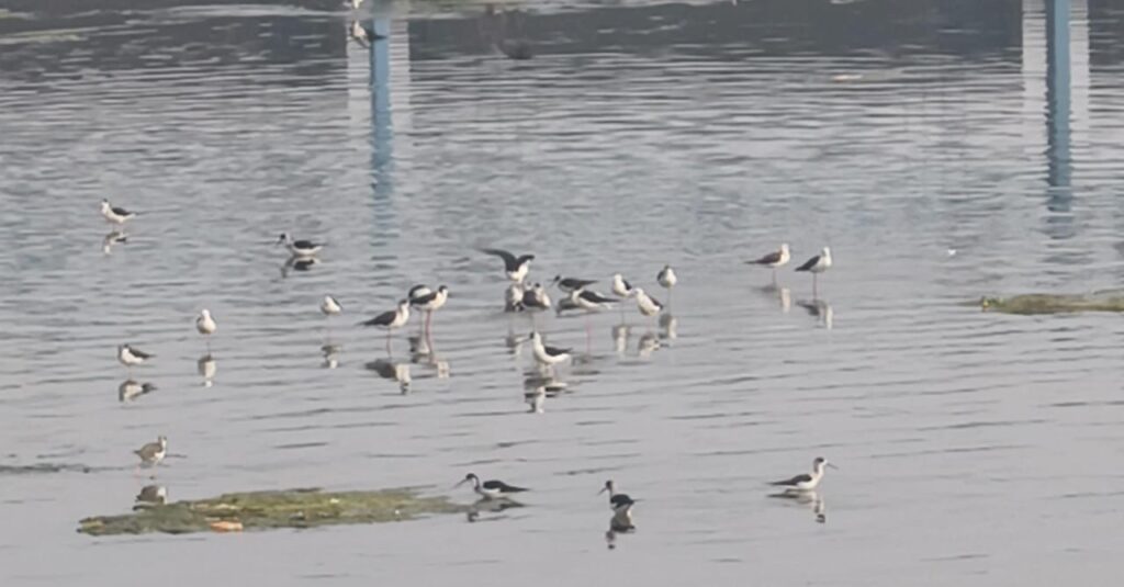वर्तमान में बैराज निर्माण कार्य के चलते नदी में पानी कम है, जिससे भोजन की उपलब्धता तो बढ़ी है, लेकिन साफ पानी और सुरक्षित आवास का अभाव इन प्रवासी पक्षियों के लिए खतरे की घंटी भी है।तस्वीरों में उथले पानी में भोजन खोजते ब्लैक-विंग्ड स्टिल्ट्स और पाइड एवोसेट बर्ड्स की तरह नजर आने वाली झुंड साफ दिखाई दे रहे हैं।हालांकि यह ब्लैक-विंग्ड स्टिल्ट या फिर पाइड एवोसेट बर्ड्स है या नही इसकी पुष्टि नही हुई है।बता दें कि अपने काले-सफेद शरीर, चमकीले गुलाबी पैरों और पतली सीधी चोंच के कारण बेहद आकर्षक जलपक्षी है, जबकि पाइड एवोसेट की पहचान उसकी लंबी टांगें और ऊपर की ओर मुड़ी हुई विशिष्ट चोंच है, जिससे वह पानी में अगल-बगल घुमाकर भोजन करता है। ये दोनों प्रजातियां छत्तीसगढ़ में शीतकालीन प्रवास पर आती हैं।फिलहाल इस पूरे घटनाक्रम की जानकारी शायद वन विभाग तक को नहीं है।