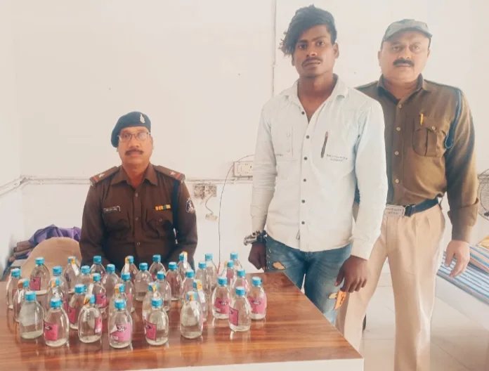 श्रीमान् पुलिस अधीक्षक महोदय बिलासपुर श्री संतोष कुमार सिंह (भा.पु. से.) के द्वारा जिले में नशे के कारोबार पर अंकुश लगाने एवं जिला को नशामुक्त करने हेतु “निजात” अभियान के तहत् कार्यवाही करने निर्देशित किया गया है, जिसके परिपालन श्रीमान अतिरिक्त पुलिस अधीक्षक महोदय बिलासपुर श्री राजेन्द्र जायसवाल एवं सी.एस.पी. (कोतवाली) श्रीमति पूजा कुमार (भा.पु.से.) के निर्देशन में थाना क्षेत्रांतर्गत अवैध शराब बिक्री करने वालों की धरपकड़ अभियान चलाया गया । इसी दौरान टीम को सूचना मिली कि विशाल पासी व्यक्ति नामक लाल खदान परियापारा मंदिर के पीछे खेत में अवैध रूप से देसी प्लेन मदिरा रखकर बिक्री कर रहा है और ग्राहक की तलाश कर रहा है कि सूचना पर सूचनास्थल पहुंचकर घेराबंदी कर उक्त व्यक्ति को पकड़ा गया जिसका नाम पता पूछने पर अपना नाम विशाल पासी पिता मुकेश पासी उम्र 19 साल 89 लालखदान परियापारा थाना तोरवा जिला बिलासपुर छत्तीसगढ़ बताया जिसके कब्जे से अवैध देशी शराब कुल 6.480 लीटर जप्त किया गया है आरोपी के विरूद्ध आबकारी एक्ट के प्रावधानों के अंतर्गत कार्यवाही कर गिरफतार किया गया है ।