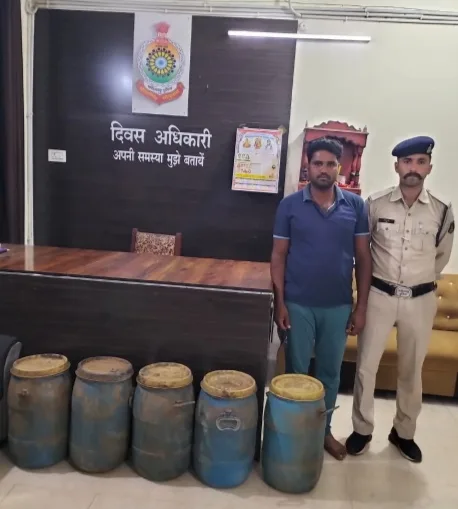 ** आरोपी के कब्जे से 100 लिटर हाथ भट्ठी का महुआ शराब कीमती 10000 रू. किया गया जप्त।