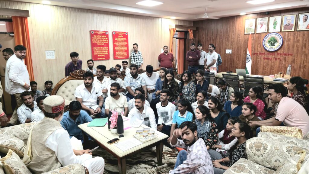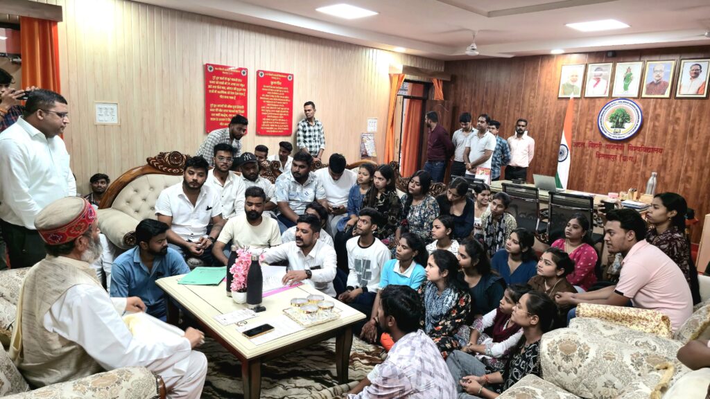 और वे विद्यार्थियों से मिलने स्वयं पहुंच गए जहां पर विद्यार्थियों द्वारा विश्वविद्यालय में हो रही गड़बड़ियों को उनके समक्ष रखा और विस्तार से उक्त सम्बन्ध में बातें बताइ जिस पर गवर्नर ने इस हेतु छत्तीसगढ़ उच्च न्यायालय के निर्णय की प्रतियाँ माँगी और उनका अवलोकन किया साथ ही बिलासपुर कलेक्टर संजय अग्रवाल को उचित कार्यवाही हेतु निर्देश दिया।