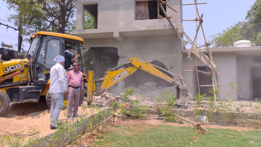 बिलासपुर शहर में लगातार अतिक्रमण और अवैध निर्माणों के खिलाफ नगर निगम द्वारा सख्त कदम उठाए जा रहे हैं। इसी क्रम में मंगलवार को नगर निगम की अतिक्रमण दस्ता टीम ने इंदु चौक के पास स्थित एक अवैध रूप से निर्मित शादी हॉल को ध्वस्त कर दिया। बताया गया कि यह निर्माण कृष्ण कुमार अग्रवाल द्वारा बिना किसी अनुमति के किया जा रहा था। निगम की टीम ने मौके पर पहुंचकर शादी हॉल को गिरा दिया और स्पष्ट किया कि बिना अनुमति किसी भी प्रकार का निर्माण बर्दाश्त नहीं किया जाएगा।