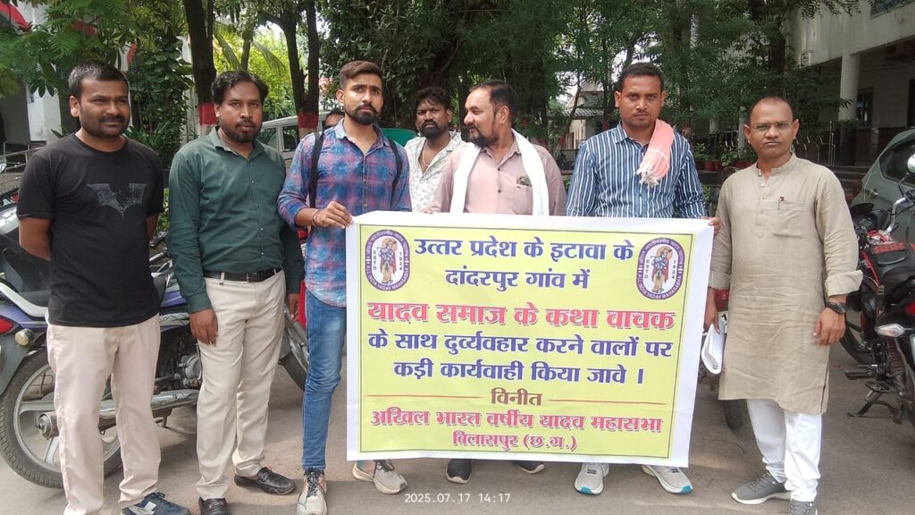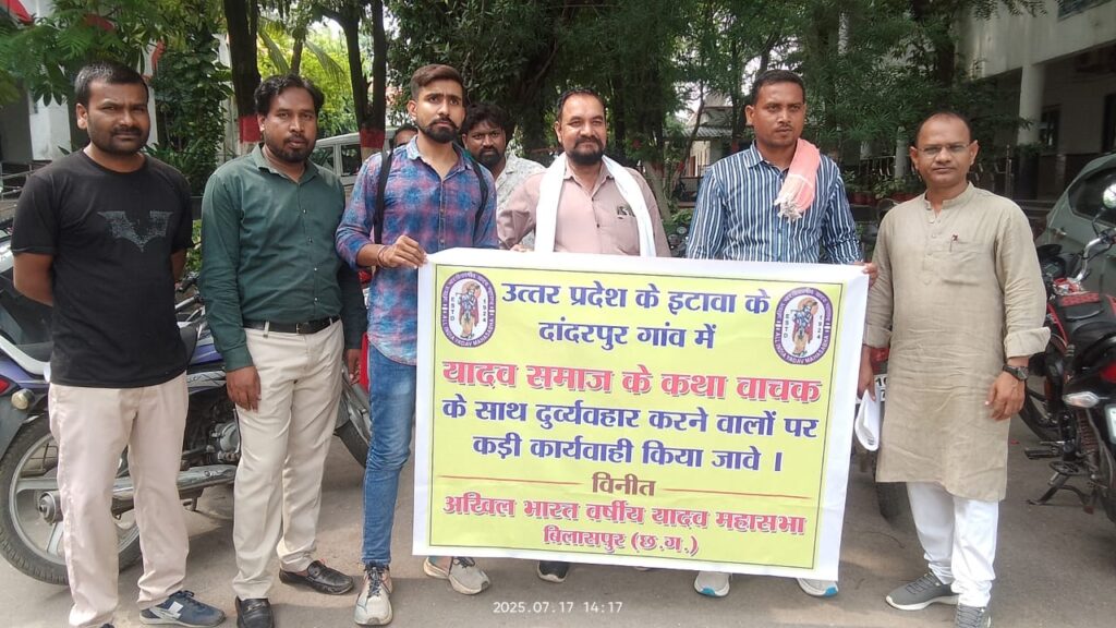 इटावा के दांदरगांव गांव में चल रहे भागवत कथा कार्यक्रम के दौरान कथावाचक और उनके सहायकों द्वारा कथित तौर पर यादव समाज के लोगों के साथ जातिगत अपमान का मामला सामने आया है। इस घटना को लेकर अखिल भारतवर्षीय यादव महासभा बिलासपुर संभाग ने कलेक्टर को ज्ञापन सौंपा है। महासभा के अनुसार, कथा वाचक द्वारा कथा के दौरान यादव समाज के व्यक्ति से जाति पूछने के बाद अपमानजनक व्यवहार किया गया। कथित तौर पर उस व्यक्ति के बाल कटवा दिए गए, नाक-रगड़वाई किया गया और उसे मारपीट कर कार्यक्रम स्थल से बाहर निकाल दिया गया।