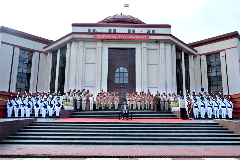 छत्तीसगढ़ उच्च न्यायालय, बिलासपुर में मुख्य न्यायाधीश श्री रोश सिंह महोदय के करकमलों से स्वतंत्रता दिवस समारोह के अवसर पर विभिन्न संस्थानों के एनसीसी कैडेट्स और अधिकारियों को प्रशस्ति पत्र प्रदान कर सम्मानित किया गया।इस मौके पर कैप्टन आशीष शर्मा डीपी विप्र कॉलेज,मनोज सिंह एएनओ, अटल बिहारी वाजपेयी विश्वविद्यालय, शुभी मानिक्य कैप्ट पीएससी कॉलेज और धर्मेंद्र सिंह बैस उप पुलिस अधीक्षक, सुरक्षा सहित कई कैडेट्स को सम्मानित किया गया।समारोह में बी कंपनी 12वीं वाहिनी के कंपनी कमांडर सरवराज सिंह, कंपनी कमांडर बाबूलाल सोनवानी, 7वीं वाहिनी एनसीसी सीनियर डिवीजन के आदित्य गिरी गोस्वामी और कैडेट अमर यादव को भी प्रमाण पत्र देकर सम्मानित किया गया। इस अवसर पर मुख्य न्यायाधीश ने सभी प्रतिभागियों को बधाई देते हुए उज्जवल भविष्य की शुभकामनाएं दीं। कार्यक्रम में रजिस्ट्री के न्यायिक अधिकारियों सहित उच्च न्यायालय के अधिकारी व कर्मचारीगण उपस्थित रहे।