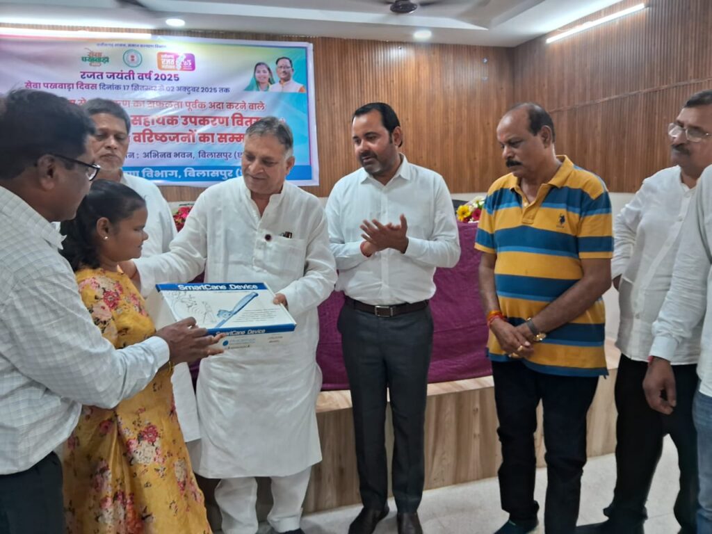 छत्तीसगढ़ राज्य के रजत जयंती वर्ष एवं सेवा पखवाड़ा कार्यक्रम के अन्तर्गत वरिष्ठ नागरिकों हेतु खेलकूद प्रतियोगिता एवं निःशक्तजन वित्त विकास निगम से प्राप्त ऋण का सफलता पूर्वक अदा करने वाले दिव्यांगजनों का बृहस्पति बाजार स्थित अनुभव भवन में आयोजित समारोह में सम्मान किया गया। विशेष आवश्यकता वाले दिव्यांगजनों को सहायक उपकरण भी प्रदाय किये गये।