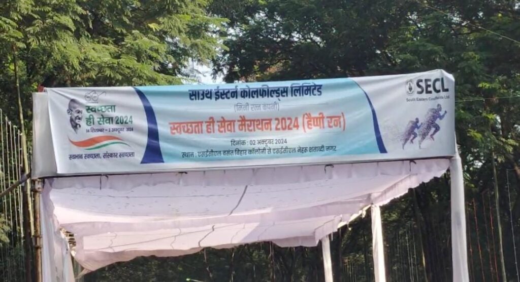 2 अक्टूबर के अवसर पर बुधवार को शहर के विभिन्न स्थानों पर कार्यक्रमों का आयोजन किया गया। कोल इंडिया की सहयोगी कंपनी एसईसीएल में भी इस अवसर पर मैराथन दौड़ रखा गया। बसंत विहार के रविंद्र भवन से शुरू हुई मैराथन दौड़ एसईसीएल मुख्यालय पहुंचकर समाप्त हुई ।तकरीबन आधा किलोमीटर के इस सफर के दौरान एसईसीएल के अधिकारियों और कर्मचारियों ने इसमें सहभागिता निभाते हुए भाग लिया। यहां गांधी जी के संदेशों का वाचन करते हुए उनके बताए हुए मार्ग पर चलने का संकल्प सभी ने लिया।