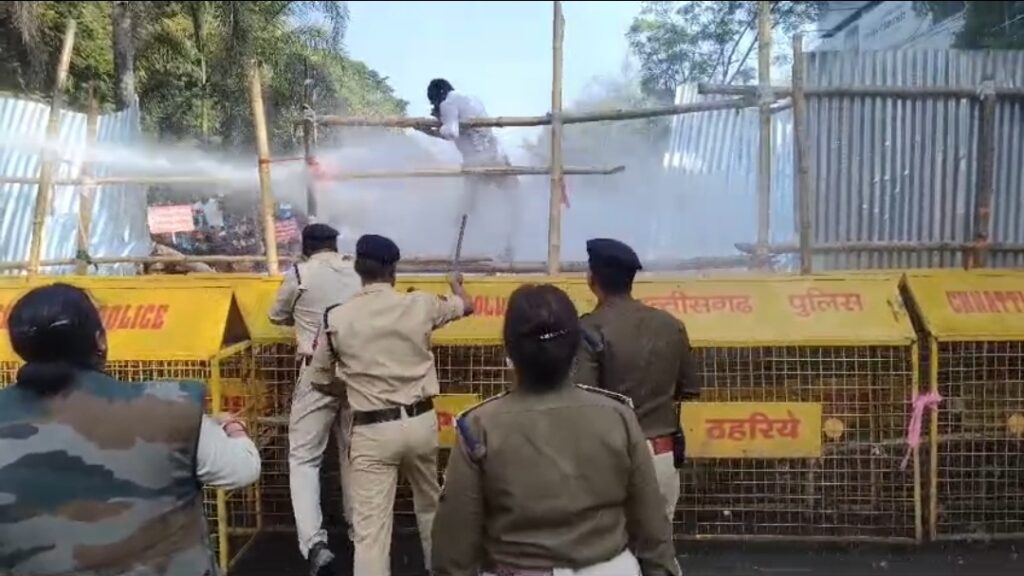 स्थिति नियंत्रण से बाहर होती देख पुलिस ने वॉटर कैन का प्रयोग कर भीड़ को पीछे धकेलने की कोशिश की। इस दौरान कांग्रेसियों और पुलिस के बीच धक्का-मुक्की और झड़प की स्थिति भी बनी, जिससे इलाके में तनावपूर्ण माहौल बन गया।