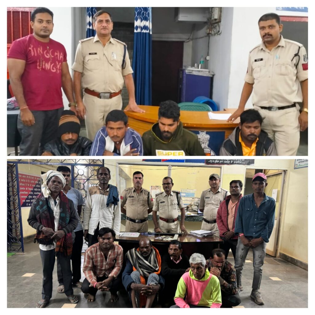 कोटा पुलिस को एक बार फिर सूचना मिली कि लालपुर गांव स्थित कोरी डैम के पास जंगल में जुए का फड़ सजा हुआ है। पुलिस की टीम ने घेराबंदी कर रेड किया तो उसके हाथ 10 जुआरी लगे। हालांकि इतनी बड़ी संख्या में जुआरियों के पकड़े जाने के बावजूद उनके पास से मात्र 7500 रु ही पुलिस जप्त कर पाई। आरोपियों के खिलाफ जुआ प्रतिषेध अधिनियम के तहत कार्यवाही की गई है । सभी जुआरी लालपुर कोटा के रहने वाले हैं। पुलिस ने ओमप्रकाश टोनडे राजकुमार घिरतेश, प्रकाश कुमार अनंत किशन तिवारी सुखी राम बिंझवार ,राम बिहारी पालके , देव कुमार लहरी ,प्यारेलाल अनंत ,परदेशी राम डहरिया भारत बिंझवार के विरुद्ध कार्यवाही की है। इधर रतनपुर पुलिस ने गिरिजावन नवागांव में कार्यवाही करते हुए चार जुआरी को पकड़ा। पकड़े गए बलदाऊ यादव, शरद कुमार साहू, शिवकुमार साहू और ऋषि मधुकर के पास से पुलिस को नगद 1930 रुपए मिले।