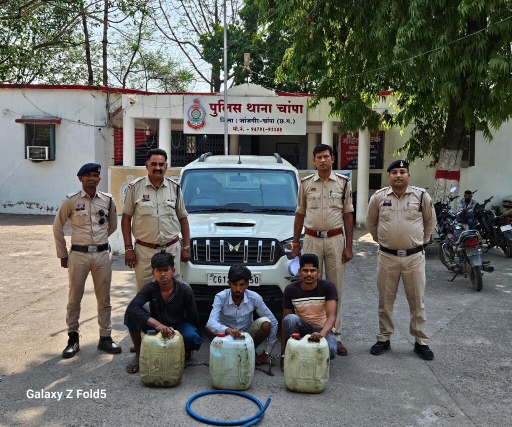 जांजगीर चांपा हथनेवरा चौक चांपा में वाहन के शोरूम के सामने प्रत्येक दिन रात्रि में वाहन खड़े रहते है।इसी दौरान शो रूम के गेट के पास 2 ट्रेलर वाहन खडी थी कि एक सफेद स्कार्पियों में अज्ञात व्यक्ति आये और दोनो ट्रेलर वाहन से कुल 450 लीटर डीजल कुल कीमती 45 हजार रूपये को चोरी कर ले गया । थाना प्रभारी जेपी गुप्ता के नेतृत्व में थाना चांपा तथा साइबर की एक संयुक्त टीम घटनास्थल की ओर रवाना किया गया टीम के द्वारा महामाया मोटर्स मे लगे सी.सी.टी.वी. कैमरा का अवलोकन किया गया पतासाजी के दौरान मुखबीर से जानकारी मिला कि इस तरह से डीजल चोरी का काम बलौदा क्षेत्र के कुछ संदिग्ध लोगो के द्वारा करने पता चलने पर तथा घटना दिनांक चोरी में उपयोग किये वाहन स्कार्पियो को बलौदा क्षेत्र के ग्राम बगडबरी के शुभम कुमार कुर्रे का वाहन स्कार्पियो CG-12- BK-8350 होना पता चलना, जो उक्त वाहन से अपने अन्य साथियो के साथ चांपा हथनेवरा क्षेत्र मे घुमना जानकारी मिलने पर हथनेवरा हसदेव नदी किनारे वाहन स्कॉर्पियो को घेरा बंदी कर पकड़ा गया कडाई से पूछताछ करने पर दिनांक घटना को महामाया मोटर्स शो रूम के गेट के पास अपने साथियो के साथ ट्रेलर वाहन से डीजल चोरी करना स्वीकार किया गया आरोपीयों से स्कार्पियो वाहन तथा चोरी का 60 लीटर डीजल को बरामद किया गया।
