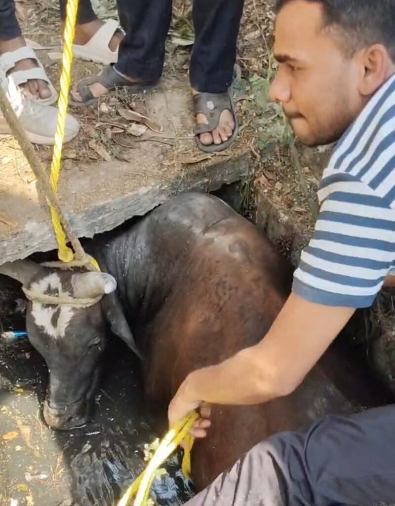 बिलासपुर। शहर के इंदू चौक स्थित बिजली ऑफिस के पास एक गहरे नाले में फंसे नंदी को गौसेवकों ने कड़ी मशक्कत के बाद सुरक्षित बाहर निकाला बताया जा रहा है कि नंदी रात से ही नाले में फंसा हुआ था और काफी देर तक बाहर निकलने के लिए संघर्ष करता रहा। घटना की सूचना मिलते ही बिलासपुर गौसेवा धाम के गौसेवक गोपाल कृष्ण रामानुज अपनी टीम के साथ मौके पर पहुंचे। उन्होंने तत्काल रेस्क्यू अभियान शुरू किया और काफी प्रयासों के बाद नंदी को सुरक्षित नाले से बाहर निकाल लिया।