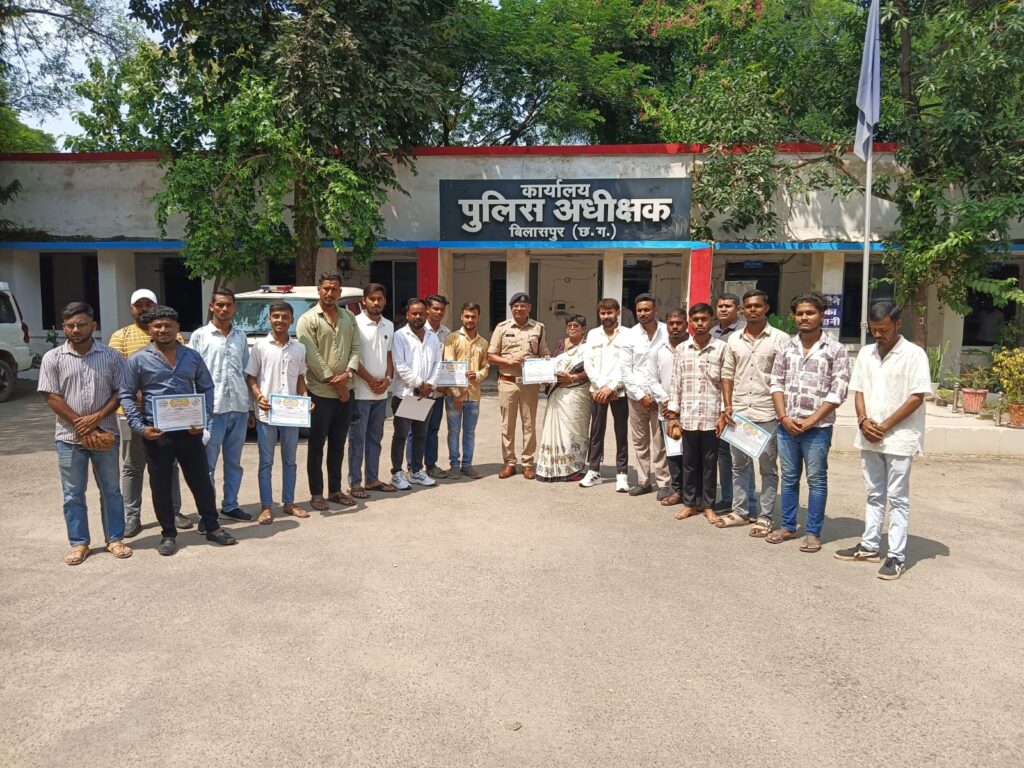 बिलासपुर पुलिस ने गणेश पूजा पर्व के दौरान पंडालों के आसपास सुरक्षित और सुगम यातायात सुनिश्चित करने, स्वच्छता बनाए रखने और सुरक्षा मानकों का पालन कराने वाले आयोजक समितियों को सम्मानित किया। वरिष्ठ पुलिस अधीक्षक रजनेश सिंह ने निर्देश दिए थे कि समितियां स्वयंसेवकों के माध्यम से पीक आवर में यातायात और मार्ग व्यवस्था में सहयोग करें और विसर्जन के दौरान शांतिपूर्ण आयोजन सुनिश्चित करें।