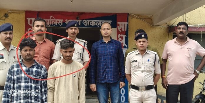जांजगीर-चांपा—जिले में मादक पदार्थों की तस्करी पर अंकुश लगाने लगातार कार्यवाही की जा रही है। इसी कड़ी में थाना अकलतरा पुलिस व रेलवे पुलिस की संयुक्त टीम ने एक बड़ी कार्यवाही को अंजाम दिया। उपनिरीक्षक के.के. साहू को मुखबिर से सूचना मिली कि रेलवे स्टेशन अकलतरा के पास दो व्यक्ति मादक पदार्थ गांजा के साथ मौजूद हैं। सूचना पर पुलिस ने त्वरित रेड की कार्रवाई की। मौके पर दो संदिग्ध व्यक्ति सूटकेस व बैग के साथ मिले, जिनसे पूछताछ पर उन्होंने अपना नाम नेपाल सिंह एवं प्रदीप सिंह मध्यप्रदेश निवासी बताया। तलाशी लेने पर उनके पास से कुल 20 किलो 820 ग्राम गांजा बरामद किया गया, जिसकी बाजार कीमत लगभग ₹4,20,000 आँकी गई।आरोपियों को गिरफ्तार कर थाना लाया गया, जहां उनके खिलाफ धारा 20बी एनडीपीएस एक्ट के अंतर्गत मामला दर्ज किया गया। आरोपियों को न्यायिक रिमांड पर भेजा गया है।