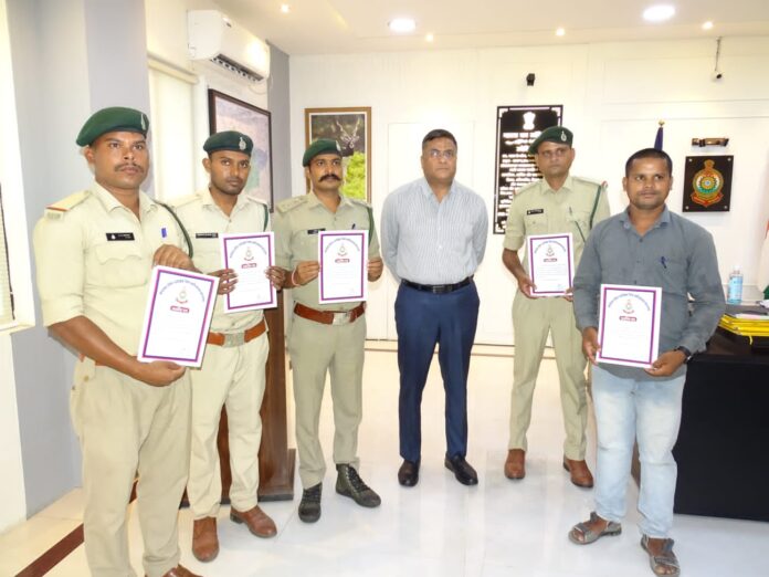 पिछले दिनों कसडोल पुलिस ने ग्राम बिलारी बैरियर बरघाट नाका के पास अवैध रूप से गांजा की तस्करी करते दो आरोपियों को गिरफ्तार कर उनके पास से 5 किलो 176 ग्राम गांजा बरामद किया था जिसकी कीमत 62,000 से अधिक थी। इस कार्रवाई में पुलिस को वन विभाग का भी महत्वपूर्ण सहयोग मिला था, जिनके प्रति आभार जताने के लिए पुलिस द्वारा उनका सम्मान किया गया।पुलिस अधीक्षक ने वन विभाग के सुनील साहू ,अश्विनी रात्रे, अश्वनी साहू, हरगोविंद जायसवाल और संजय वर्मा को प्रशस्ति पत्र देकर उनका सम्मान किया।
