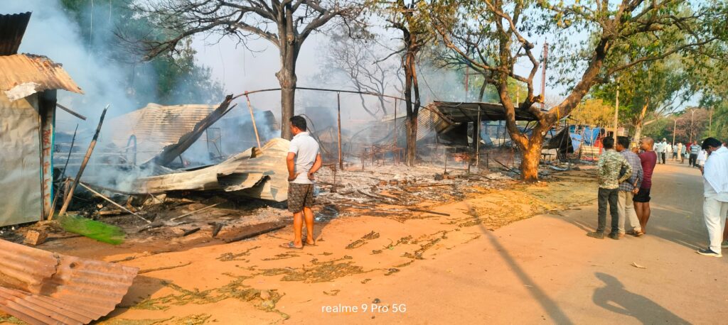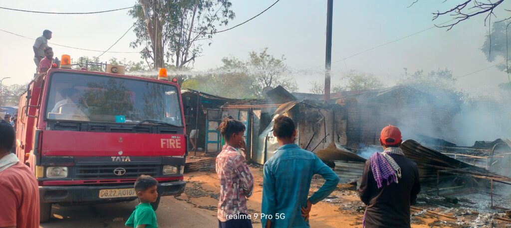 गिरौदपुरी मंदिर परिसर के पास ट्रांसफार्मर में लगी आग ने विकराल रूप लेकर करीब 10 दुकानों को अपनी चपेट में ले लिया, लेकिन चौकी गिरौदपुरी पुलिस और स्थानीय लोगों की तत्परता से आग पर समय रहते काबू पा लिया गया।