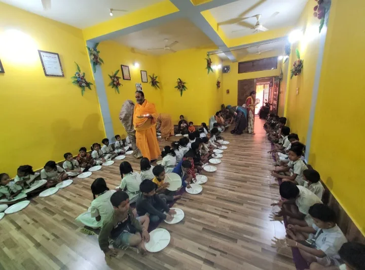 गुप्त नवरात्रि के आठवें दिन श्री पीताम्बरा पीठ त्रिदेव मन्दिर सुभाष चौक सरकण्डा मे कन्यापूजन भोजन का आयोजन किया गया