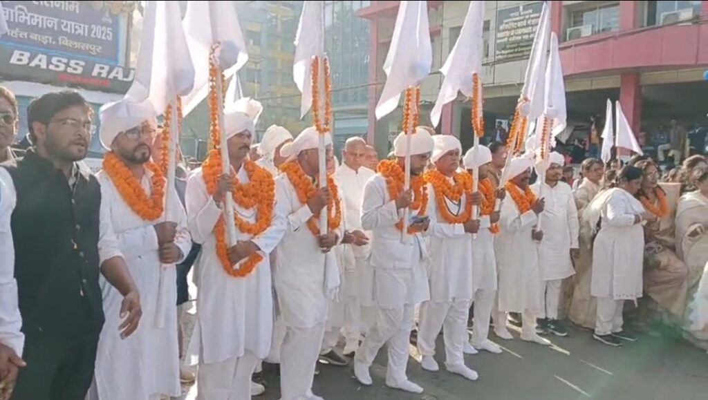 मांखे मांखें एक समान का संदेश देने वाले महान संत गुरु घासीदास बाबा की जयंती गुरुवार को पूरे श्रद्धा और उत्साह के साथ मनाई जाएगी। जयंती से पूर्व बुधवार को बिलासपुर में एक भव्य शोभायात्रा निकाली गई, जिसमें बड़ी संख्या में सतनाम समाज के लोग शामिल हुए। यह शोभायात्रा जरहाभाठा स्थित महत बाड़ा से प्रारंभ होकर शहर के प्रमुख मार्गों से गुजरते हुए पुनः अपने प्रारंभिक स्थल पर पहुंचकर संपन्न हुई।शोभायात्रा के दौरान पूरे शहर में धार्मिक और सांस्कृतिक वातावरण देखने को मिला। यात्रा जिन-जिन क्षेत्रों से होकर गुजरी, वहां गुरु घासीदास बाबा के संदेशों का प्रचार होता नजर आया।