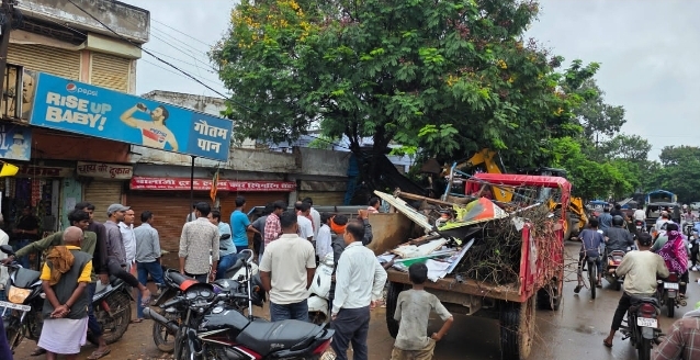 बिलासपुर :- बिलासपुर उच्च न्यायालय के आदेश और कलेक्टर के निर्देश पर शनिवार को बोदरी नया पारा चौक से चकरभांठा ब्रिज तक एवं रहंगी मोड़ से हाईकोर्ट आवासीय परिसर तक सड़क किनारे किए गए अवैध अतिक्रमण को हटाने बड़ी कार्रवाई की गई।फलों सब्जियों के ठेले, गुमटी, दुकानों के आगे लगाए गए पोस्टर और शेड को हटाकर नगरपालिका दस्ते ने जब्त कर लिया।सुबह 8 बजे से शाम 4.30 बजे तक चली कार्रवाई में यातायात बाधित करने वाले अव्यवस्थित वाहनों को लिफ्टर से उठाकर थाने भेजा गया। अभियान में तहसीलदार संदीप साय, नायब तहसीलदार ओमप्रकाश चंद्रवंशी, थाना प्रभारी उत्तम साहू, सीएमओ भारती साहू समेत राजस्व व पुलिस विभाग के अधिकारी-कर्मचारी बड़ी संख्या में मौजूद रहे।