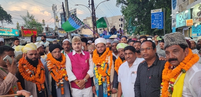बिलासपुर :- जश्ने ईद मिलादुन्नबी के अवसर पर इस वर्ष भी शहर में भव्य जुलूस निकाला गया। परंपरा अनुसार बिलासपुर की उसकी देन कमेटी के तत्वाधान में आयोजित इस जुलूस का भव्य स्वागत किया गया। हर वर्ष की तरह इस बार भी कांग्रेस के वरिष्ठ और लोकप्रिय नेता श्री त्रिलोक चंद्र श्रीवास, राष्ट्रीय समन्वयक अखिल भारतीय कांग्रेस कमेटी एवं प्रभारी उत्तर प्रदेश और गुजरात के मार्गदर्शन में आयोजन को और भी भव्य रूप दिया गया।