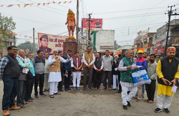 संयोजक ज़फ़र अली, हरीश तिवारी ने कहा कि सुभाष चंद बोस जी का जन्म कटक में एक जमीदार परिवार में हुआ, 14 संतानो में 9 वी सन्तान थे ,पिता एक प्रतिष्ठित वकील थे और कांग्रेस से जुड़े हुए थे, सुभाष बाबू कुशाग्र बुद्धि के थे ,जो आईसीएस की परीक्षा उत्तीर्ण करने के बाद भारत वापस आ गए और आज़ादी की लड़ाई में कूद पड़े,और 1939 के त्रिपुरी अधिवेशन में कांग्रेस के अध्यक्ष निर्वचित हुए । 1945 में विमान दुर्घटना में इनके निधन की खबरे प्रचलित है पर कोई प्रामाणिक नही है ,इसलिए उनकी मृत्यु रहस्यमय बना हुआ है।