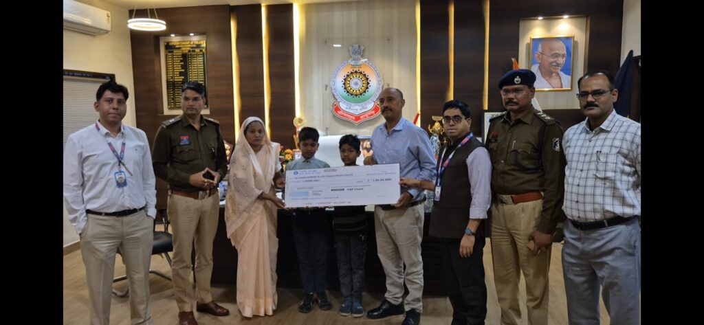 जांजगीर-चांपा पुलिस विभाग की मानवीय पहल के तहत थाना चांपा में पदस्थ रहे स्वर्गीय आरक्षक प्रहलाद दिनकर की पत्नी को पुलिस सैलरी पैकेज योजना के अंतर्गत 1 करोड़ रुपये की बीमा राशि का चेक प्रदान किया गया। आरक्षक प्रहलाद दिनकर का 16 सितंबर 2025 को रात्रि ड्यूटी के बाद घर लौटते समय लच्छनपुर चौक, मेन रोड पर सड़क दुर्घटना में मौके पर ही निधन हो गया था।पुलिस अधीक्षक विजय कुमार पाण्डेय के सतत प्रयासों के फलस्वरूप आज स्टेट बैंक ऑफ इंडिया, जांजगीर शाखा नैला के बैंक प्रबंधन द्वारा यह बीमा राशि स्व. आरक्षक की पत्नी को सौंपी गई। यह सहायता पुलिस सैलरी पैकेज योजना के अंतर्गत प्रदान की गई है, जिसका उद्देश्य पुलिस कर्मियों के परिवारों को संकट के समय आर्थिक संबल देना है।इस अवसर पर अतिरिक्त पुलिस अधीक्षक उमेश कुमार कश्यप, डीएसपी मुख्यालय विजय पैकरा, मुख्य लिपिक दिनेश शर्मा एवं बैंक अधिकारी उपस्थित रहे। सभी ने शोक संतप्त परिवार के प्रति संवेदना व्यक्त करते हुए हर संभव सहयोग का भरोसा दिलाया।