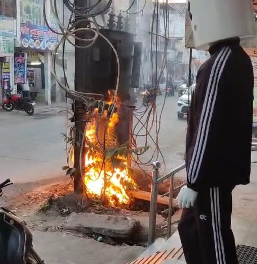 जांजगीर लिंक रोड में ट्रांसफार्मर में आग,अचानक आग लगने से मची आफरा तफरी, समय रहते बुझाया गया आग