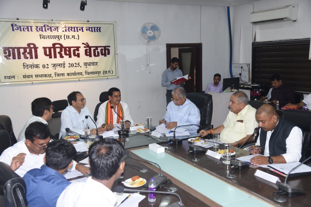 बिलासपुर, जिला खनिज संस्थान न्यास की शासी परिषद की बैठक कलेक्टर संजय अग्रवाल की अध्यक्षता में मंथन सभाकक्ष में संपन्न हुई। इस महत्वपूर्ण बैठक में वित्तीय वर्ष 2025-26 के लिए 100 करोड़ रुपये से अधिक की वार्षिक कार्य-योजना को सर्वसम्मति से स्वीकृति दी गई। बैठक में जिले के सांसद व केन्द्रीय राज्यमंत्री तोखन साहू, विधायकगण धरमलाल कौशिक, धर्मजीत सिंह, सुशांत शुक्ला, दिलीप लहरिया, अटल श्रीवास्तव तथा जिला पंचायत अध्यक्ष राजेश सूर्यवंशी सहित कई जनप्रतिनिधि व अधिकारी शामिल हुए।