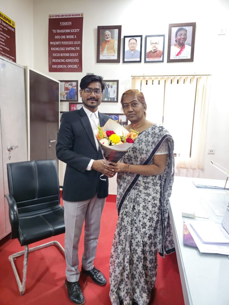 शहर के प्रतिष्ठित शिक्षण संस्थान डीपी विप्र विधि महाविद्यालय में नेतृत्व परिवर्तन हुआ है। महाविद्यालय की वरिष्ठ प्राध्यापक सुश्री सुषमा तिवारी को प्रभारी प्राचार्य नियुक्त किया गया है। यह निर्णय 02 फरवरी को आयोजित गवर्निंग बॉडी की बैठक में सर्वसम्मति से लिया गया था। इसके पश्चात 11 फरवरी को निवर्तमान प्राचार्य डॉ. अन्नू भाई सोनी ने विधिवत रूप से उन्हें कार्यभार सौंपते हुए उज्ज्वल कार्यकाल की शुभकामनाएं दीं।नई नियुक्ति से महाविद्यालय में उत्साह का माहौल है। 13 फरवरी को स्टूडेंट यूनियन के प्रतिनिधियों एवं विद्यार्थियों ने प्रभारी प्राचार्य से शिष्टाचार भेंट की। इस अवसर पर विद्यार्थियों ने पुष्पगुच्छ भेंट कर उनका आत्मीय स्वागत किया और नई जिम्मेदारी के लिए बधाई दी।कार्यभार ग्रहण के बाद अपने संबोधन में सुश्री सुषमा तिवारी ने कहा कि उनकी प्राथमिकता शैक्षणिक गुणवत्ता को और सुदृढ़ करना, अनुशासन को बनाए रखना तथा विद्यार्थियों के सर्वांगीण विकास के लिए अनुकूल वातावरण तैयार करना होगी। उन्होंने संस्थान की परंपराओं को आगे बढ़ाने के साथ-साथ छात्र-छात्राओं की समस्याओं पर छात्र नेताओं के साथ मिलकर समाधान करने की प्रतिबद्धता भी व्यक्त की।