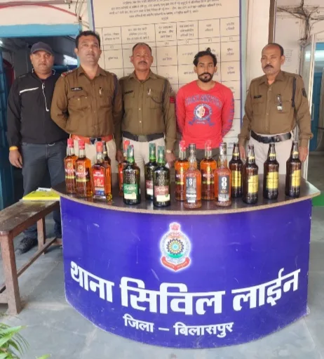 मामले का विवरण इस प्रकार है की दिनांक 17/12/2023 को थाना प्रभारी सिविल लाइन प्रदीप आर्य को जरिए मुखबिर सूचना मिला की ईमलीपारा रोड बजरंग बली मंदिर के पास एक व्यक्ति इलेक्ट्रानिक स्कूटी में शराब रखकर तस्करी कर रहा है की सूचना से श्रीमान पुलिस अधीक्षक महोदय श्री संतोष कुमार सिंह को अवगत कराया गया, जिनके द्वारा उक्त व्यक्ति को तत्काल गिरफ्तार कर कार्यवाही करने दिए गए निर्देश के पालन में अतिरिक्त पुलिस अधीक्षक महोदय शहर श्री राजेंद्र जयसवाल, नगर पुलिस अधीक्षक महोदय सिविल लाइन श्री संदीप पटेल के मार्गदर्शन में थाना प्रभारी सिविल लाइन प्रदीप आर्य द्वारा टीम बनाकर रेड कार्यवाही की गई ईमलीपारा रोड बजरंग बली मंदिर के पास एक व्यक्ति अवैध रूप से अपनी इलेक्ट्रानिक स्कुटी क्रमांक CG 10 BQ 6570 में एक हल्का पीला रंग के थैला में शराब रखकर जा रहा था जिसको रोककर पूछताछ किया गया, जिसके कब्जे से हल्का पीला रंग के थैला को चेक करने पर 05 नग बियर बटवाईजर प्रत्येक बाटल में 650ML कुल 3.250 लीटर कीमती 1150 रू., अंग्रेजी शराब 8PM 2 बाटल प्रत्येक बाटल में 750ML वाली कुल 1.500 लीटर कीमती 1760, ऐरिस्टोकेट 4 बाटल प्रत्येक बाटल में 750ML वाली कुल 3.000 लीटर कीमती 2840 रू., आर.सी 02 बाटल प्रत्येक बाटल में 750ML वाली कुल 1.500 लीटर कीमती 1760 रू. एवं सिगनेचर 03 बाटल प्रत्येक बाटल में 750ML वाली कुल 2.250 लीटर कीमती 3300 रू. शराब की मात्रा कुल जुमला 11.500 लीटर, कीमती कुल जुमला रकम 10,810 रू. बरामद होने पर धारा 91 जाफी, नोटिस जारी कर शराब रखने के संबध में एवं ओला इलेक्ट्रानिक स्कुटी से परिवहन करने के संबंध में कोई वैध कागजात पेश नही करने पर समक्ष गवाहन के मुताबिक जप्ती पत्रक के उपरोक्त शराब व परिवहन में प्रयुक्त ओला इलेक्ट्रानिक स्कुटी क्रमांक CG10 BQ 6570 कीमती करीब 1,25,000 रूपये जुमला कीमती 1,35,810 रूपये विधिवत जप्त कर कब्जा पुलिस लिया गया तथा आरोपी एवं उपरोक्त जप्तशुदा शराब एवं ओला इलेक्ट्रानिक स्कुटी क्रमांक CG10 BQ 6570 को थाना लाया गया विधिवत अपराध पंजीबद्ध कर माननीय न्यायालय के समक्ष पेश किया गया