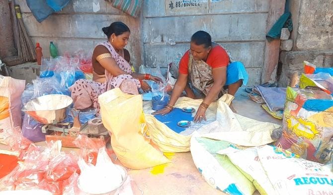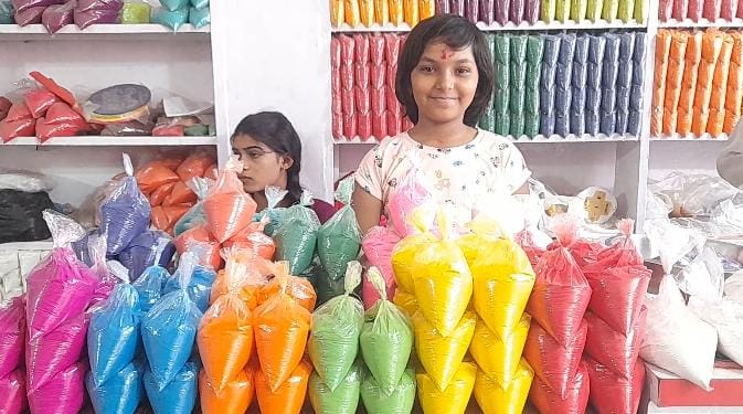 लोगों के बीच त्योहार पर रंगोली बनाने का ट्रेंड काफी बढ़ गया है। मान्यता है कि पूजा पाठ तीज त्यौहार में रंगोली बनाना शुभ होता है। त्योहारों का सीजन चल रहा है ऐसे में बाजार में रंग बिरंगी रंगोलियो की दुकानें सज गई है। बाजार में महिला बड़ी संख्या में रंगोली खरीदने पहुंच रही है। जैसा कि देखा जा रहा है बाजार में रंगोली की मांग बढ़ गई है। महिला अपने पसंद के रंगों को घरों के आंगन में सजाने के लिए ले जा रही है। इसके साथ ही चिल्लर विक्रेता थोक विक्रेता से रंगोली की खरीदारी कर रहे हैं। रंगोली के साथ-साथ इस बार रंगोली बनाने के विभिन्न वैरायटी के डिजाइन बाजार में देखी जा रही है।