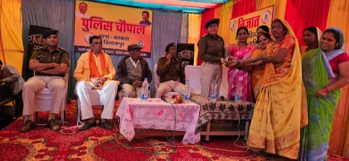 संक्षिप्त विवरण इस प्रकार है कि आज दिनांक 29-1-2024 को थाना सरकंडा क्षेत्र के बंधवापारा में जिले के पुलिस अधीक्षक श्री संतोष कुमार सिंह के निर्देशन तथा अतरिक्त पुलिस अधीक्षक(शहर) श्री राजेंद्र कुमार जायसवाल,नगर पुलिस अधीक्षक (कोतवाली) श्री मती पूजा कुमार के मार्गदर्शन मे आज पुलिस चौपाल का आयोजन किया गया आयोजन में मुख्य रूप से आम जनों से रूबरू होकर सभी को पुलिस चौपाल के उद्देश्यों के बारे में विस्तृत रूप से बताया गया विदित हो कि बिलासपुर जिले में नशे के विरुद्ध जन जागरूकता अभियान "निजात" चलाया जा रहा है जिसके तहत नशे मे संलिप्त लोगों को नशे से दूर रहने समझाईश देने के साथ ही नशे से दूर होने के तरीकों तथा विशेषज्ञों द्वारा थाना स्तर पर लगातार काउंसलिंग के संबंध में विस्तृत रूप से बताया गया इसके साथ ही आम जनों से अपील की गई की यदि कहीं पर भी नशे से संबंधित कोई भी सामान की बिक्री हो रही है तो इसकी सूचना तत्काल संबंधित थाने को दें जिस पर शत प्रतिशत करवाई करने के बारे में बताया गया इसके साथ ही पुलिस चौपाल कार्यक्रम के तहत आम जनों से उनकी समस्याओं के संबंध में विस्तृत रूप से चर्चा की गई तथा थाना क्षेत्र में बीट प्रभारी को उसके बीट में प्रत्येक जानकारी होने के साथ ही बीट में निवासरत प्रत्येक नागरिक तथा अपराधिक तत्वों के संबंध में जानकारी होना बताया गया कार्यक्रम में उपस्थित सभी लोगों को उनके बीट प्रभारी से रूबरू कराया गया ताकि भविष्य में किसी भी प्रकार की कोई समस्या होने पर लोगों को तत्काल बीट प्रभारी से मदद मिल सके इसके साथ ही निजात कार्यक्रम तथा पुलिस चौपाल के माध्यम से पुलिस को अपने बीच में पाकर आम लोग काफी उत्साहित नजर आए तथा कार्यक्रम के उद्देश्यों को समझकर इस कार्यक्रम में भरपूर सहयोग देने अपनी सहमति दिए। पुलिस चौपाल मे अतिरिक्त पुलिस अधीक्षक (शहर) श्री राजेंद्र जायसवाल, नगर पुलिस अधीक्षक (कोतवाली) श्रीमती पूजा कुमार, थाना प्रभारी सरकंडा जयप्रकाश गुप्ता एवं स्टाफ के साथ-साथ वार्ड पार्षद श्याम साहू एवं बड़ी संख्या में महिला समूह के सदस्य एवं इमलीभाटा,चौबेकॉलोनी , जोरापारा , बंधवापारा,नूतन कॉलोनी के लोग उपस्थित रहे। थाना क्षेत्र में इस तरह के कार्यक्रम लगातार अलग-अलग क्षेत्र में संचालित किये जाएंगे।