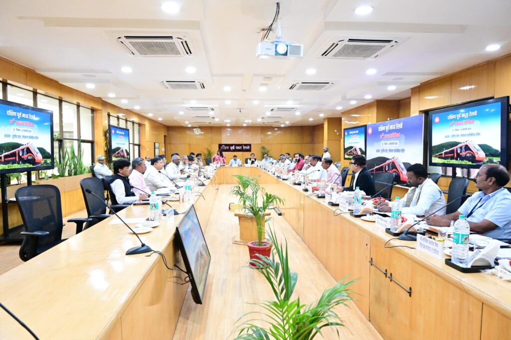 दक्षिण पूर्व मध्य रेलवे मुख्यालय में सोमवार को 21वीं क्षेत्रीय रेलवे उपयोगकर्ता परामर्शदात्री समिति की बैठक सौहार्दपूर्ण माहौल में सम्पन्न हुई। बैठक की अध्यक्षता महाप्रबंधक तरुण प्रकाश ने की, जिसमें रेलवे के वरिष्ठ अधिकारियों के साथ समिति के सदस्य मौजूद रहे। बैठक की शुरुआत में सचिव समीर कांत माथुर ने समिति की भूमिका और रेलवे की उपलब्धियों में सदस्यों के योगदान को रेखांकित किया।अपने संबोधन में महाप्रबंधक तरुण प्रकाश ने यात्रियों की सुविधा को सर्वोच्च प्राथमिकता बताते हुए जोन में चल रहे विकास कार्यों की जानकारी दी।