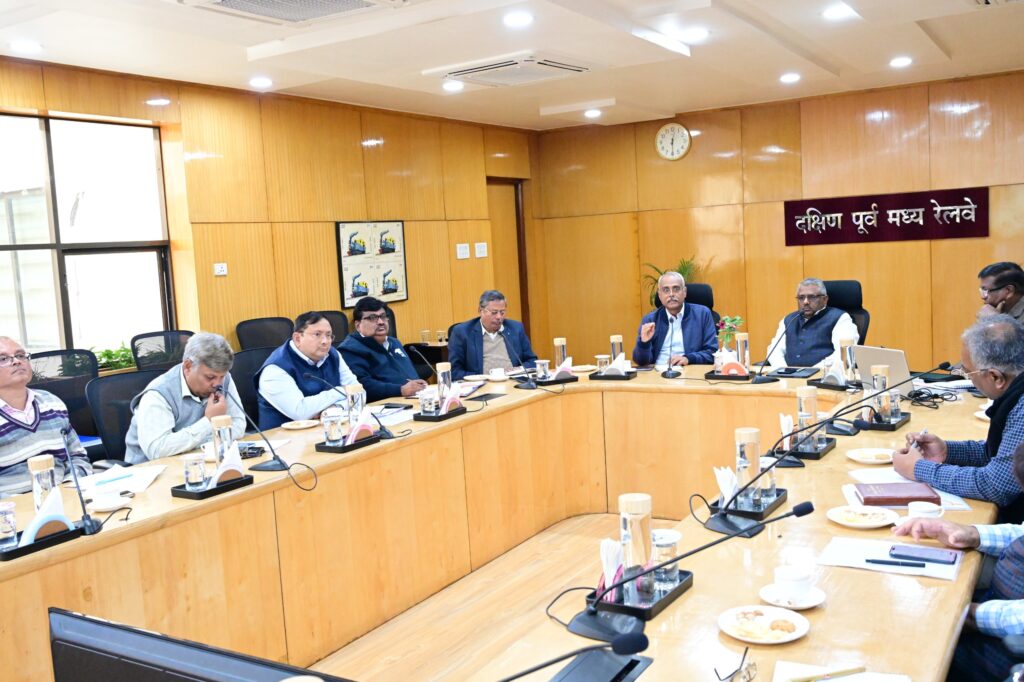 दक्षिण पूर्व मध्य रेलवे मुख्यालय बिलासपुर में आज मुख्य संरक्षा आयुक्त बृजेश मिश्रा और महाप्रबंधक तरुण प्रकाश की बैठक आयोजित हुई, जिसमें सुरक्षा मानकों, परीक्षण प्रक्रियाओं, दस्तावेज़ीकरण और नई रेल लाइनों के अनुमोदन पर विस्तार से चर्चा की गई।