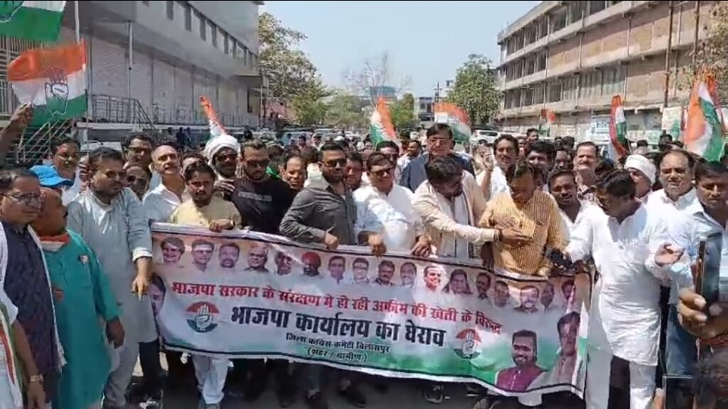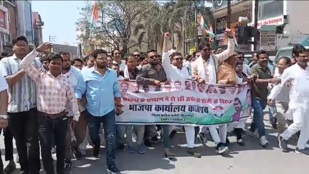 दरअसल छत्तीसगढ़ में विभिन्न स्थानों पर अफीम की हो रही खेती और उसमें भाजपा नेताओं की संकल्पित पर कांग्रेस आकर्षित है और इसे लेकर कांग्रेस आंदोलन कर रही है लिहाजा गुरुवार को बड़ी संख्या में कांग्रेस कार्यकर्ता इमलीपारा मुख्य मार्ग के पास एकत्र हुए और वहां से रैली निकालते हुए भाजपा कार्यालय की ओर कूच किया।प्रदर्शन को देखते हुए पुलिस प्रशासन ने पहले से ही सुरक्षा के कड़े इंतजाम किए थे। भाजपा कार्यालय के बाहर बैरिकेडिंग लगाकर बड़ी संख्या में पुलिस बल तैनात किया गया था।