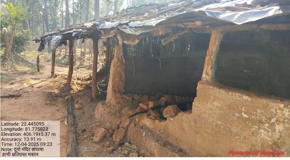 अचानकमार टाइगर रिज़र्व से लगे छपरा गांव में गुरुवार देर रात चार जंगली हाथियों ने जमकर हंगामा मचाया। रात करीब 2.30 से 3 बजे के बीच हाथियों का दल दुर्गा मंदिर के पास बने एक कच्चे मकान में घुस गया। उन्होंने मकान को तोड़ते हुए अंदर रखा लगभग 50 किलो चावल, घरेलू सामान, कुर्सियाँ, सोलर लाइट और 500 लीटर क्षमता की पानी की टंकी नुकसान पहुंचा दी। इस मकान में रहने वाली गंगाबाई परिवार सहित किसी तरह जान बचाकर बाहर निकली और आसपास के लोगों को सूचना दी।