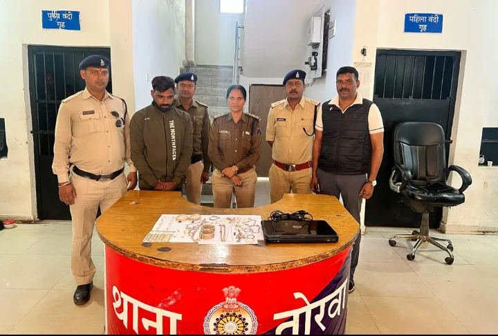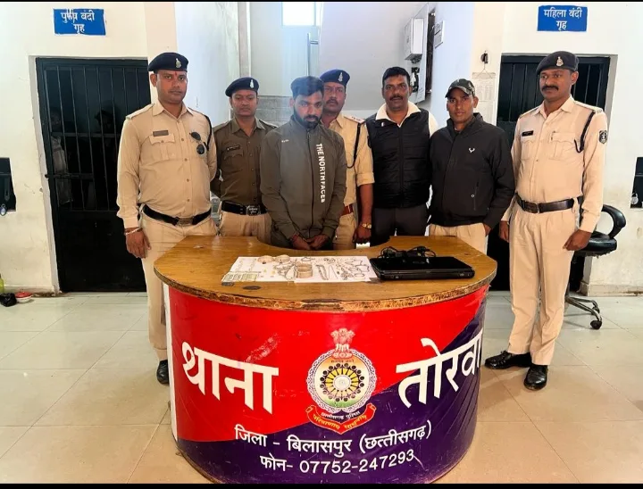 1. थाना तोरवा द्वारा 7. 12. 2023 को देवरी खुर्द मैं चोरी गए मसरूका सोने चांदी के जेवर व नगदी बरामद किया गया है आरोपी नानू उर्फ ओमप्रकाश सूर्यवंशी पिता स्वर्गीय पंचराम सूर्यवंशी उम्र 23 साल निवासी शिव मंदिर तोरवा बस्ती थाना तोरवा बिलासपुर छत्तीसगढ़ को गिरफ्तार किया गया है जिस रिमांड पर न्यायालय पेश किया गया है उक्त कार्यवाही में थाना प्रभारी कमला पुसाम ठाकुर उपनिरीक्षक दिनेश पुरैना आरक्षक लक्ष्मी कश्यप अजय शर्मा सुनील सिंह अशोक चंद्राकर का योगदान रहा