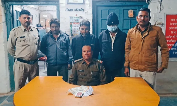 थाना सिटी कोतवाली जिला बिलासपुर के अपराध क्रमांक 36/ 24 धारा 3(2 )छत्तीसगढ़ जुआ( प्रतिषेध )अधिनियम 2022 के प्रकरण में जुआड़ीयान 01. प्रकाश केशरी पिता भगवती प्रसाद केसरी उम्र 61 वर्ष निवासी दयालबंद 02.बजरंग नरेश पिता किशोरी नरेश उम्र 44 वर्ष निवासी दयालबंद 01. अरविंद गोले पिता स्नेही गोले उम्र 44 वर्ष निवासी दयालबंद के द्वारा नयापारा दयालबंद में अवैध रूप से जुआ खेलते पाए जाने पर जुगाड़ियों के कब्जे से कुल 5620 रुपये , 52 पत्ती ताश एवं एक बोरी का पट्टी को जप्त कर विधिवत कार्यवाही किया गया है