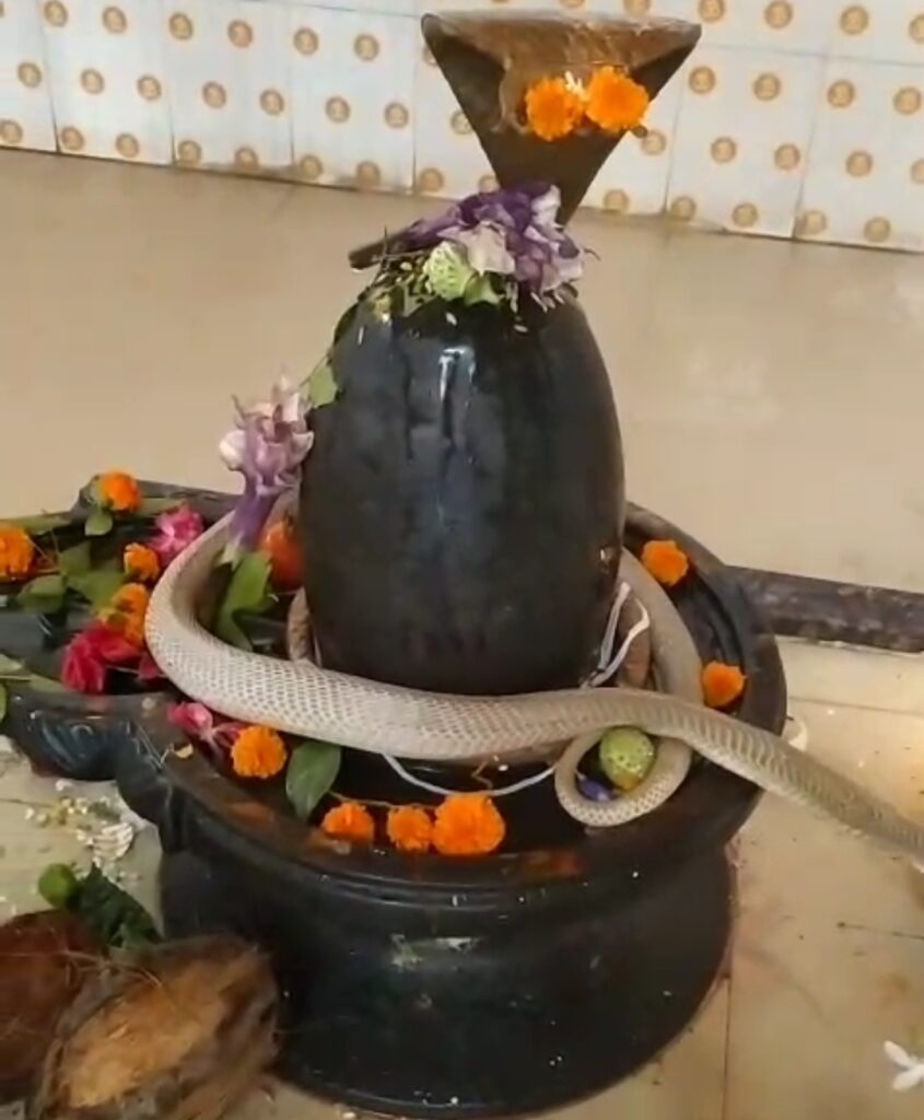 जिसके बाद जब उस सपेरा ने अपने साथ रखे पिटारा का डक्कन खोला। सर्प रेंगते हुए सीधे शिवलिंग जाकर सवार हो गया। जिसे देखने के लिए देखते देखते ही लोगों की भीड़ जमा हो गई। सर्प शिवलिंग ने 15 से 20 मिनट तक बैठा रहा। इस दरमियान शिवलिंग की पूजा का दौर चल रहा। कई भक्तगण डरे हुए रहे कई भक्त भगवान की लीला समझ रहे पूजा करते रहे। जिसका वीडियो सोशल मीडिया में वायरल हो रहा है। भक्तो के बीच सावन के महीना में ऐसा दृश्य देखने से माहौल भक्तमय बना रहा। बाद मे पूजा कोई अर्चन न हो इसलिए सपेरा द्वारा सर्प शिवलिंग उतारकर पिटारा में डाला गया।