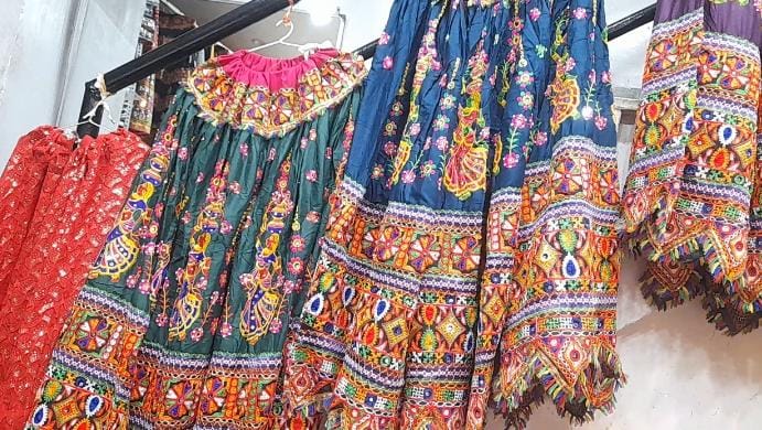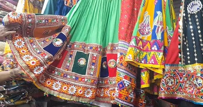 हर ओर बस नवरात्रि की धूम है। मां को विराजित करने के लिए सुंदर एवं खूबसूरत पंडाल भी सज गए हैं। कई जगहों पर डांडिया एवं गरबा के आयोजन भी हो रहे हैं। गरबा को लेकर युवाओं में काफी उत्साह नजर आ रहा है। खासतौर पर युवतियां गरबा को लेकर काफी उत्साहित हैं। गरबा में पहनने वाले पारंपरिक ड्रेस चनिया चोली की इस समय जमकर डिमांड है। इसी वजह से रंग बिरंगी एवं आकर्षित चनिया चोली की खूब बिक्री हो रही है। बाजार में जगह-जगह चनिया चोली के दुकान सज गए हैं। एक दो साल की बच्चियों से लेकर युवती महिलाओं के लिए तरह-तरह के चनिया चोली बाजार में देखने को मिल रहे हैं। इन्हें किराए पर भी उपलब्ध कराया जा रहा है।
