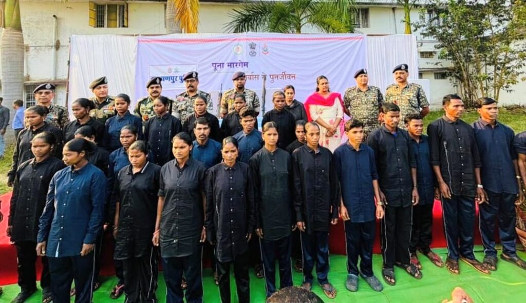 नारायणपुर जिले में “पूना मारगेम : पुनर्वास से पुनर्जीवन” पहल के अंतर्गत एक महत्वपूर्ण उपलब्धि दर्ज की गई, जहां कुल 28 माओवादी कैडरों ने हथियारों के साथ आत्मसमर्पण कर मुख्यधारा में लौटने का निर्णय लिया। समर्पित कैडरों में ₹89 लाख के इनामी 19 महिला माओवादी भी शामिल हैं। यह जिला प्रशासन, पुलिस, केंद्रीय सुरक्षा बलों तथा स्थानीय समाज के संयुक्त प्रयासों का सराहनीय परिणाम है।