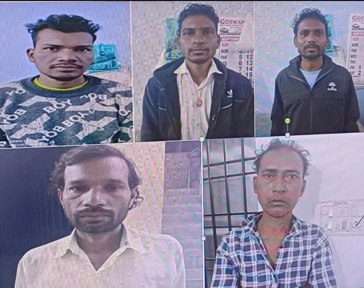 - नाम आरोपी 1. अजीत यादव पिता समारू लाल यादव उम्र 28 साल ग्राम टिकारी थाना मस्तूरी बिलासपुर 2. सुग्रीव यादव पिता रामनाथ यादव 33 साल ग्राम टिकारी थाना मस्तूरी बिलासपुर 3. सत्यनारायण केवट पिता मनीराम केवट उम्र 25 साल ग्राम ध्रुवाकारी थाना पचपेड़ी बिलासपुर 4. लक्ष्मण यादव पिता धनाराम यादव उम्र 52 साल ग्राम टिकारी थाना मस्तूरी बिलासपुर 5. कृष्ण कुमार सोनी पिता दौलत राम सोनी उम्र 38 साल पता देवरीखुर्द बिलासपुर