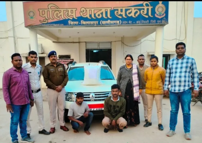 विवरण- इस प्रकार है कि श्रीमान् पुलिस अधीक्षक महोदय बिलासपुर श्री संतोष कुमार सिंह (भा.पु.से.) के द्वारा जिले में नशे के कारोबार पर अंकुश लगाने एवं जिले को नशामुक्त करने हेतु ‘‘निजात अभियान” चलाया जा रहा है एवं अवैध नशे के खिलाफ सक्त् कार्यवाही करने के निर्देश दिये हैं, जिसके परिपालन में श्रीमान अति०पुलिस अधीक्षक महोदय शहर बिलासपुर श्री राजेन्द्र जायसवाल, श्रीमान अति०पुलिस अधीक्षक महोदय ग्रामीण श्रीमती अर्चना झा एवं सी.एस.पी. (सिविल लाईल) श्री संदीप पटेल के निर्देशन में थाना प्रभारी के नेतृत्व में सकरी पुलिस के द्वारा नशे के कारोबार पर अंकुश लगाने हेतु विशेष अभियान चलाया जा रहा है कि अभियान के तहत दिनांक 30-12-2023 को मुखबीर से सूचना मिली कि सैदा निवासी सुलक्षणा पाण्डेय अपने सफेद रंग के डस्टर कार क्रमांक सीजी 10 जेड 4100 में उड़ीसा की ओर से अवैध मादक पदार्थ गांजा लेकर सैदा अपने घर आ रही है कि मुखबीर सूचना पंचनामा तैयार किया गया। मुखबीर के बताये पते ग्राम सैदा के गतवा तालाब के पास पहुंचकर घेराबंदी कर रेड कार्यवाही किया जो मुखबीर द्वारा बताये गये वाहन सफेद रंग का डस्टर कार क्रमांक सीजी 10 जेड 4100 सैदा चौक की ओर से आते हुए दिखी जिसे घेरा बंदी कर गतवा तालाब के पार में घेराबंदी कर रोका गया चालक सीट पर एक व्यक्ति बैठे मिला तथा उसके बगल में एक व्यक्ति एवं पीछे सीट पर एक महिला बैठे हुए मिली जिसे पुछताछ करने पर चालक व्यक्ति अपना नाम इदरीश मोहम्मद पिता स्व दिलदार मोहम्मद उम्र 45 वर्ष निवासी महामाया पारा घुटकू थाना कोनी बताया तथा चालक सीट के बगल में बैठे व्यक्ति अपना नाम मोनू चौधरी ऊर्फ विनोद चौधरी पिता सुन्दर चौधरी उम्र 25 वर्ष निवासी बगधरा पारा मोहल्ला लालपुर थाना गरिला एवं पीछे बैठी महिला अपना नाम सुलक्षणा पाण्डेय पति सत्य प्रकाश पाण्डेय उम्र 39 वर्ष निवासी ग्राम सैदा थाना सकरी का होना बताया। प्रकरण में आरोपियों के कब्जे से मादक पदार्थ गांजा का कुल वजन 12 किलो ग्राम, बोरी सहित कुल वजन 12 किलो 100 ग्राम, कीमती 1,20,000 रूपये, मोबाईल फोन 2 नग कीमती 10000 रूपये , सफेद रंग डस्टर कार क्रमांक सी जी 10 जेड 4100 एवं कार की चाबी कीमती 10,00000 /-रूपये, नगदी रकम 2000 रूपये को जप्त कर मौके पर देहाती नालसी कार्यवाही की गई। उक्त तीनों आरोपियों के विरूध्द अपराध धारा 20 बी एनडीपीएस एक्ट का पाये जाने से देहाती नालसी लेकर थाना आकर नंबरी अपराध दर्ज किया गया एवं विधिवत कार्यवाही बाद आरोपियों को न्यायिक रिमाण्ड पर भेजा गया है ।