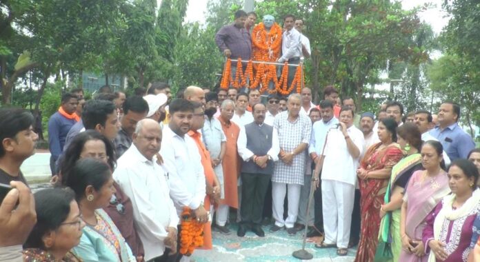 उप मुख्यमंत्री अरूण साव ने एकात्म मानववाद के प्रणेता,प्रसिद्ध विचारक एवं चिंतक पंडित दीनदयाल उपाध्याय की जयंती पर उन्हें सादर नमन किया हैं। उन्होंने दीनदयाल गार्डन में उनकी प्रतिमा पर माल्यार्पण कर श्रद्धांजलि अर्पित की। इस अवसर पर नगर निगम द्वारा आयोजित स्वच्छता ही सेवा अभियान में भी हिस्सा लिया। गार्डन में विधायकों और जनप्रतिनिधियों के साथ झाड़ू लगाकर कचरा साफ किया। स्वच्छता दीदियों को साड़ी और किट भी वितरित किए। स्वच्छता मैराथन को हरी झंडी दिखाई। विधायक धरमलाल कौशिक, धरमजीत सिंह, सुशांत शुक्ला, जिला पंचायत अध्यक्ष अरूण सिंह चौहान, कलेक्टर अवनीश शरण, निगम आयुक्त अमितकुमार भी अभियान में शामिल हुए।मुख्य अतिथि की आसंदी से उप मुख्यमंत्री अरुण साव ने कहा कि पंडित दीनदयाल उपाध्याय देश के बड़े विचारक एवं चिंतक हुए हैं। उन्होंने आधुनिक राजनीति को एक नई दिशा दी ।देश की विरासत के अनुरूप हमारा देश तरक्की करे, ये उनका विचार था।