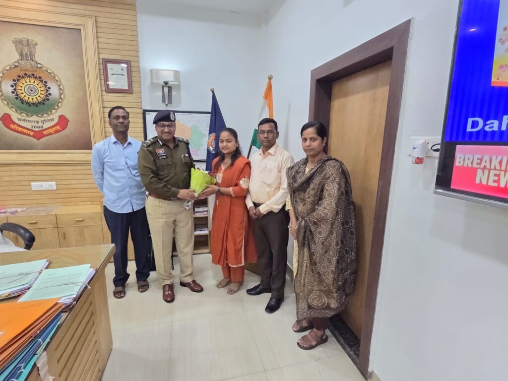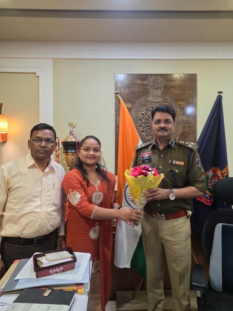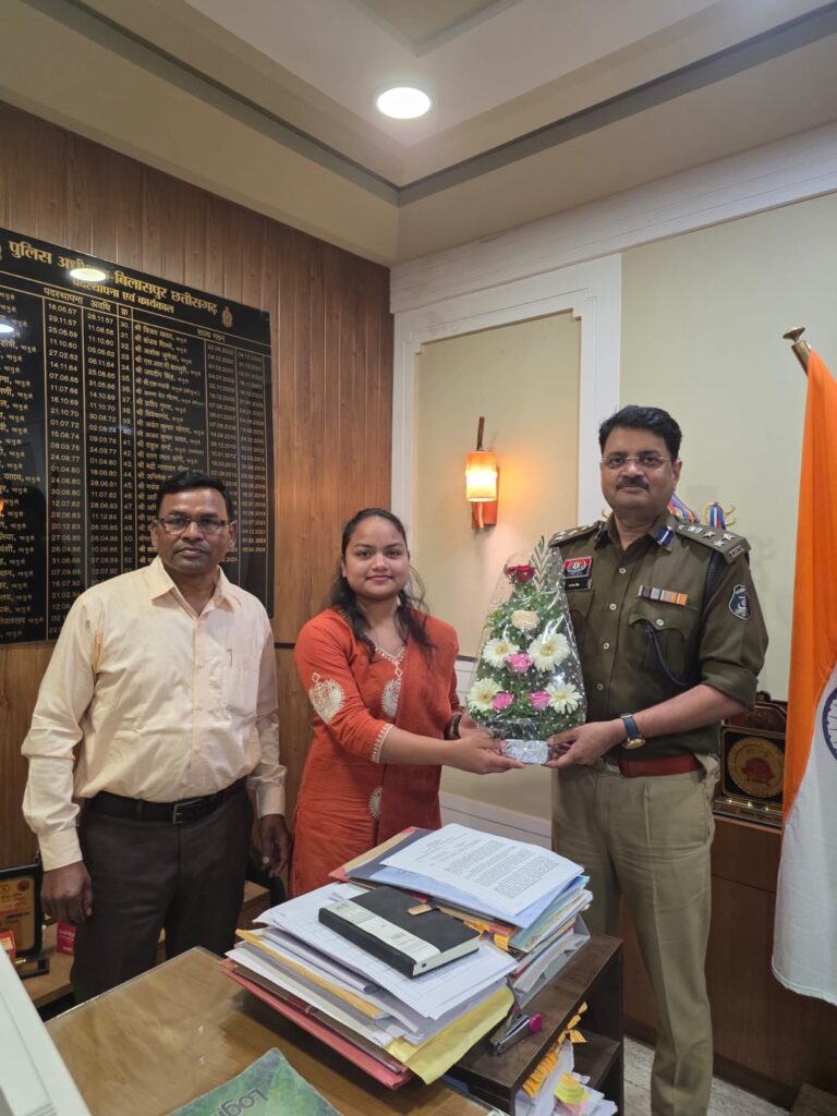 पुलिस महानिरीक्षक रामगोपाल गर्ग ने पुलिस परिवार की प्रतिभाशाली बेटी स्वाति पैकरा के सिविल जज परीक्षा में प्रथम प्रयास में चयन होने पर उन्हें कार्यालय में सम्मानित कर शुभकामनाएं दीं। स्वाति अपने पिता प्रधान आरक्षक सतलोक साय पैकरा और जोनल पुलिस अधीक्षक दीपमाला कश्यप के साथ आईजी कार्यालय पहुंचीं, जहां उन्हें पुष्पगुच्छ और स्मरणिका भेंट कर सम्मानित किया गया।