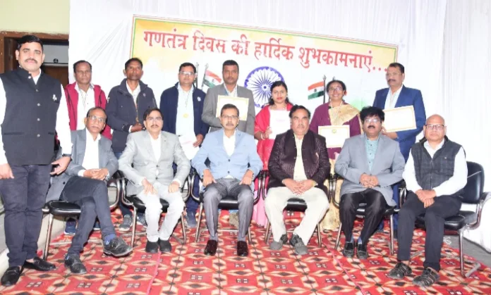 बिलासपुर 26 जनवरी 2024-छत्तीसगढ़ स्टेट पॉवर डिस्ट्रीब्यूशन कंपनी लिमिटेड, बिलासपुर क्षेत्र मुख्यालय तिफरा में मुख्य अतिथि मुख्य अभियंता श्री ए.के.धर ने ध्वजारोहण कर तिरंगे को सलामी दी तथा अध्यक्षीय उद्बोधन में विद्युत कंपनी एवं बिलासपुर क्षेत्र के विद्युत विकास की प्रगति से अवगत कराया। इस अवसर पर क्षेत्र के 6 कर्मियों को उनके कार्यक्षेत्र में उत्कृष्ट कार्य का प्रदर्शन करने के लिए सर्वश्री कीर्ति कुमार यादव, परिचारक श्रेणी-एक, मन्नूलाल पटेल लाईन परिचारक श्रेणी-एक, उमेश कुमार श्रीवास्तव अनुभाग अधिकारी, रूपनारायण साहू परिचारक श्रेणी-दो, जितेन्द्र कुमार सारथी लाठन परिचारक श्रेणी-एक, श्रीमती अनुपमा महतो को पदक, प्रशस्ति पत्र एवं पारितोषिक राशि से सम्मानित किया गया, साथ ही लेखा प्रशिक्षण में प्रथम स्थान प्राप्त करने के लिए श्रीमती श्रद्धा खास्केल कार्यालय सहायक श्रेणी-दो तथा गौरीशंकर भारद्वाज को तकनीकी प्रशिक्षण में प्रथम स्थान प्राप्त करने के लिए सम्मानित किया गया।