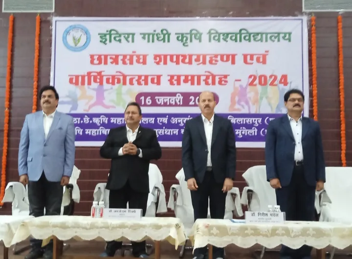 बिलासपुर / सरकंडा स्थित कृषि विज्ञान केंद्र में प्राकृतिक खेती जागरूकता अभियान के तहत कृषि विज्ञान केंद्र बिलासपुर एवं कृषि जागरण नई दिल्ली के सामूहिक तत्वाधान में प्राकृतिक खेती जागरूकता अभियान के तहत समृद्ध किसान उत्सव कार्यक्रम मनाया गया…इस कार्यक्रम के तहत मुख्य अतिथि आइजीकेवी के कुलपति डॉ.गिरीश चंदेल,डीन डॉ .आरकेएस तिवारी और संयुक्त संचालक (कृषि )एमके चौहान और डॉ.अरुण कुमार त्रिपाठी और किसान संघ की तरफ से माधव सिंह,राघवेंद्र सिंह चंदेल और भरत खेत्रपाल,दिलीप सिंह मौजूद रहे…जिनके मार्गदर्शन में यह कार्यक्रम किया गया…इस अवसर पर 5 लखपति किसानो को कृषि जागरण द्वारा पुरस्कृत किया गया…इसके साथ ही कृषि विज्ञान केंद्र बिलासपुर के 30 उन्नतशील किसानो को पुरस्कृत किया गया….वही इस अवसर पर कुलपति ने कहा की निश्चित ही आज के दौर में जैविक खेती और प्राकृतिक खेती को लेकर किसानो में जागरुकता आई है…जो पहले कभी इतने ज्यादा जागरूक नहीं रहे…क्योंकि रासायनिक खेती शरीर के लिए ख़तरा रहता है…जिससे शरीर में समस्या होती है…और बीमारी का रूप ले लेती है…यही कारण है की किसानो को किसी न किसी बहाने और शिविर के माध्यम से प्राकृतिक खेती की जानकारी दी जाती है…ताकि किसान जैविक खेती और प्राकृतिक खेती कर सके…उन्होंने किसानो से यह भी कहा की इससे जमीन भी बढ़िया रहती है शरीर को नुकसान भी नहीं होता है और फसल भी बढ़िया होता है…इसके बाद उन्होंने किसानो से यह भी अपील किया की किसान ज्यादा फसल और कम समय में ज्यादा पैदावार के चक्कर में न फंसे…बल्कि जैविक और प्राकृतिक खेती पर ज्यादा ध्यान देना चाहिए….वही उन्होंने कहा की हमारा उद्देश्य यही रहता है की ज्यादा से ज्यादा किसानो को जागरूक किया जा सके…और किसान इसका पूरा लाभ ले सके…वही डीन डॉ.आरकेएस तिवारी ने कहा की किसान देश की जान है जिनके फसल को कोने कोने तक फैलाया जाता है भेजा जाता है और किसान बढ़िया फसल की पैदावार करेंगे तो इससे उनको ही लाभ मिलेगा..और उनका नाम होगा आय का साधन बढ़ेगा…इसके लिए गाँव गाँव में शिविर लगाया जाता है…ताकि किसानो को किसी न किसी बहाने जागरूक किया जा सके…यहाँ तक कृषि विज्ञान केंद्र में कार्यशाला का भी आयोजन किया जाता है जिसमे किसानो को प्राकृतिक और जैविक खेती उत्पादन को लेकर प्रशिक्षण दिया जाता है….इस अवसर पर श्रुति जोशी,परीक्षित,मयंक,डॉ शिल्पा कौशिक मोदी,डॉ .अमित शुक्ला,हेमकांति बंजारे,जयंत साहू ,डॉ.निवेदिता पाठक,डॉ .स्वाति शर्मा,सुशीला ओहदार,संतोष वर्मा,इन्दराम पटेल समेत 300 से ज्यादा किसान मौजूद रहे…जिन्होंने इस कार्यक्रम में शामिल होकर गंभीरता से सूना और समझा….साथ ही कृषि विज्ञान केंद्र बिलासपुर,कृषि युग गनियारी जन स्वास्थ्य 