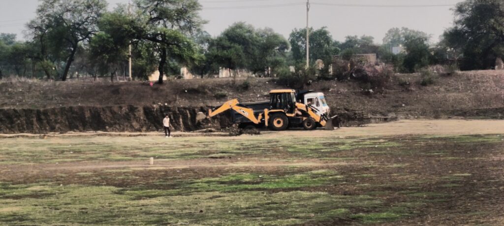 लेकिन कुछ दिनों से इस तालाब की मेड को तोड़कर जेसीबी से अवैध रूप से मिट्टी निकाली जा रही है। ग्रामीणों का आरोप है कि यह सारा काम प्रभावशाली लोगों की मिलीभगत से हो रहा है और अधिकारी आंखें मूंदे बैठे हैं।ग्रामीणों का कहना है कि यदि यह अवैध खुदाई नहीं रोकी गई तो आने वाले समय में तालाब बर्बाद हो जाएगा और किसानों को सिंचाई के लिए पानी की किल्लत का सामना करना पड़ेगा। क्षेत्रीय ग्रामीणों ने प्रशासन से दोषियों पर सख्त कार्रवाई की मांग की है ताकि जलस्रोत को बचाया जा सके।फिलहाल इस पूरे मामले में प्रशासन की चुप्पी कई सवाल खड़े कर रही है। ग्रामीणों की अपील है कि समय रहते सख्त कदम उठाए जाएं ताकि इस जीवनदायिनी तालाब को बचाया जा सके और क्षेत्र में जल संकट न उत्पन्न हो।