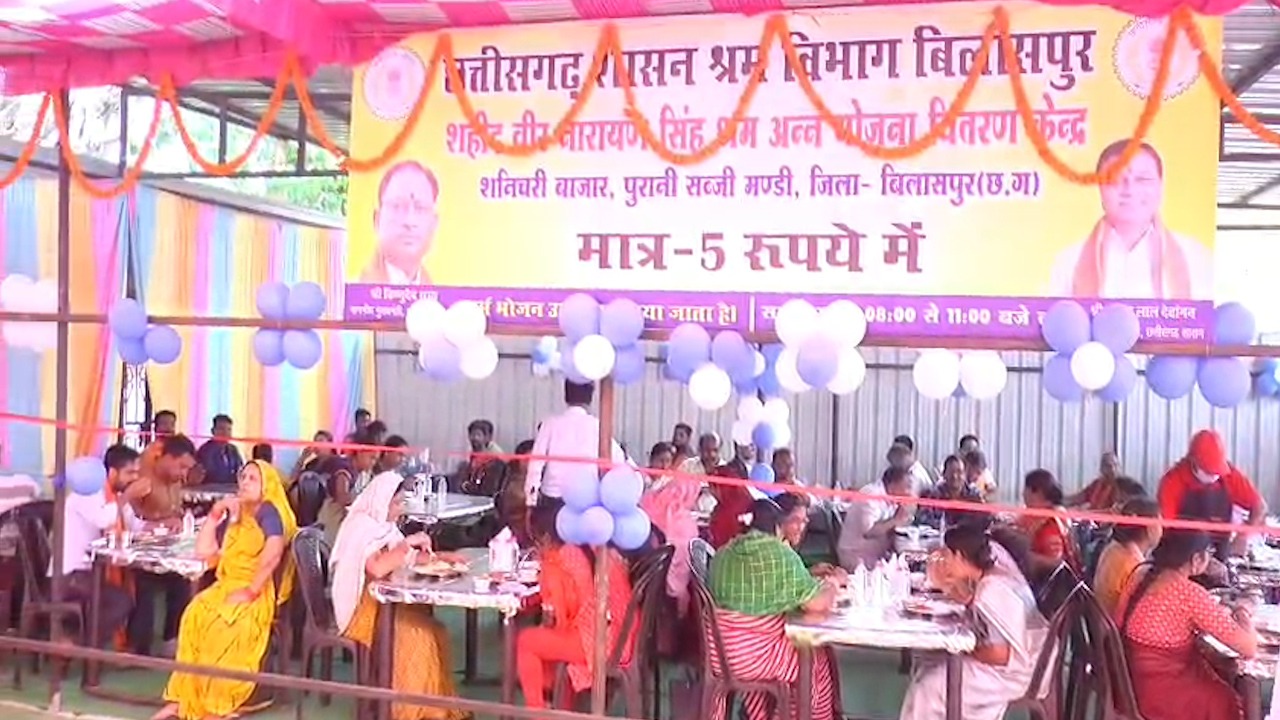 बिलासपुर शहर के श्रमिक बहुल शनिचरी चांटीडीह इलाके के पुराने मंडी परिसर में शहीद वीर नारायण सिंह श्रम अन्न केंद्र का विधायक सुशांत शुक्ला ने शुभारंभ किया। जहा मात्र 5 रुपए में पंजीकृत श्रमिकों को भरपेट भोजन मिलेगा। भक्त माता कर्मा जयंती के शुभ अवसर पर विधायक सुशांत शुक्ला ने शुभारंभ करते हुए श्रमिकों के साथ बैठकर भोजन किया। केंद्र से प्रतिदिन लगभग 700 मजदूरों को लाभान्वित करने की योजना है। गौरतलब है कि ये शहर का तीसरा श्रम अन्न केंद्र है। इसके पहले वृहस्पति बाजार और तिफरा में पूर्व से संचालित है। कुल मिलाकर तीनों अन्न केंद्रों से लगभग 1800 श्रमिकों को मात्र 5 रुपए में भरपेट भोजन मुहैया हो रहा है। विधायक सुशांत शुक्ला ने फीता काटकर श्रम अन्न केंद्र का लोकार्पण किया। उन्होंने बताया कि चांटीडीह के मजदूरों ने तीन माह पहले श्रमिक भोजन केंद्र की मांग की थी। मुख्यमंत्री विष्णु देव साय और श्रम मंत्री लखनलाल देवांगन के निर्देश पर अल्पावधि में यह केंद्र शुरू हो पाया। उन्होंने इलाके के श्रमिकों को बधाई दी और बेहतर संचालन के लिए शुभकामनाएं दी। उन्होंने आश्वस्त किया कि आकस्मिक रूप से पहुंचकर केंद्र में मजदूरों के साथ भोजन करूंगा। भोजन की गुणवत्ता हमेशा बनाए रखने के निर्देश संचालक को दिए। समारोह को महापौर पूजा विधानी ने भी संबोधित किया। उन्होंने कहा कि श्रमिकों को ट्रिपल इंजन सरकार का फायदा मिला। श्रम विभाग की सहायक आयुक्त ज्योति शर्मा ने स्वागत भाषण दिया। उन्होंने योजना की खूबी बताई। कहा कि श्रमिक काम की तलाश में सवेरे से ही चावड़ी में बैठ जाते है। बिना खाए पिए वे इंतजार करते रहते हैं। कई बार बिना कुछ खाए काम में चले जाते हैं। इससे उनके स्वास्थ्य पर विपरीत असर पड़ता है। इसे देखते हुए विष्णुदेव की सरकार ने योजना लाई। अब वे मात्र 5 रुपए में भरपेट भोजन कर काम में जा सकते हैं। टिफिन में भोजन पैक करवा कर भी ले सकते हैं किसी भी हालत में उन्हें भूखे नहीं रहना है। सवेरे 8 बजे से 11 बजे तक भोजन केंद्र खुला रहता है। श्रम निरीक्षक योशिता शर्मा ने विभागीय योजनाओं से श्रमिकों को अवगत कराया।