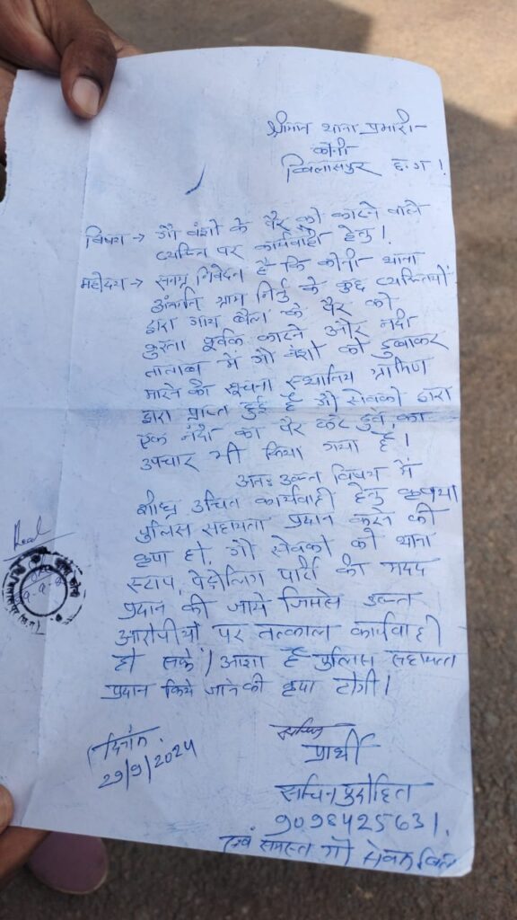 जिसकी सूचना मिलने पर बिलासपुर के गौ सेवको ने घूटकू गांव का निरीक्षण किया ,जिससे उक्त प्रकरण को सत्य पाया गया।जिसकी सूचना थाना कोनी में गौ सेवको द्वारा दिया गया है। जिसमें गौ सेवकों ने बताया कि थाना प्रभारी कोनी द्वारा, जल्द से जल्द कार्यवाही का आश्वासन दिया गया है।
